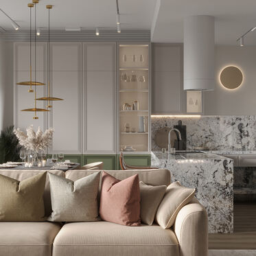 Читать статьюДизайн интерьера квартиры в ЖК «ОМ» в Москве в стиле современной классики — 58 м²