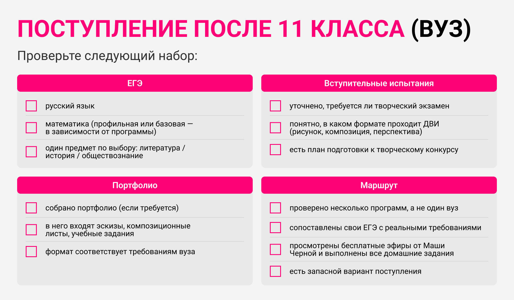 Приёмная комиссия это видит сразу. Портфолио — это способ показать не идеальный результат, а способ мышления. Аккуратные эскизы, простые композиции и логичные решения работают лучше, чем перегруженные, но случайные работы.
