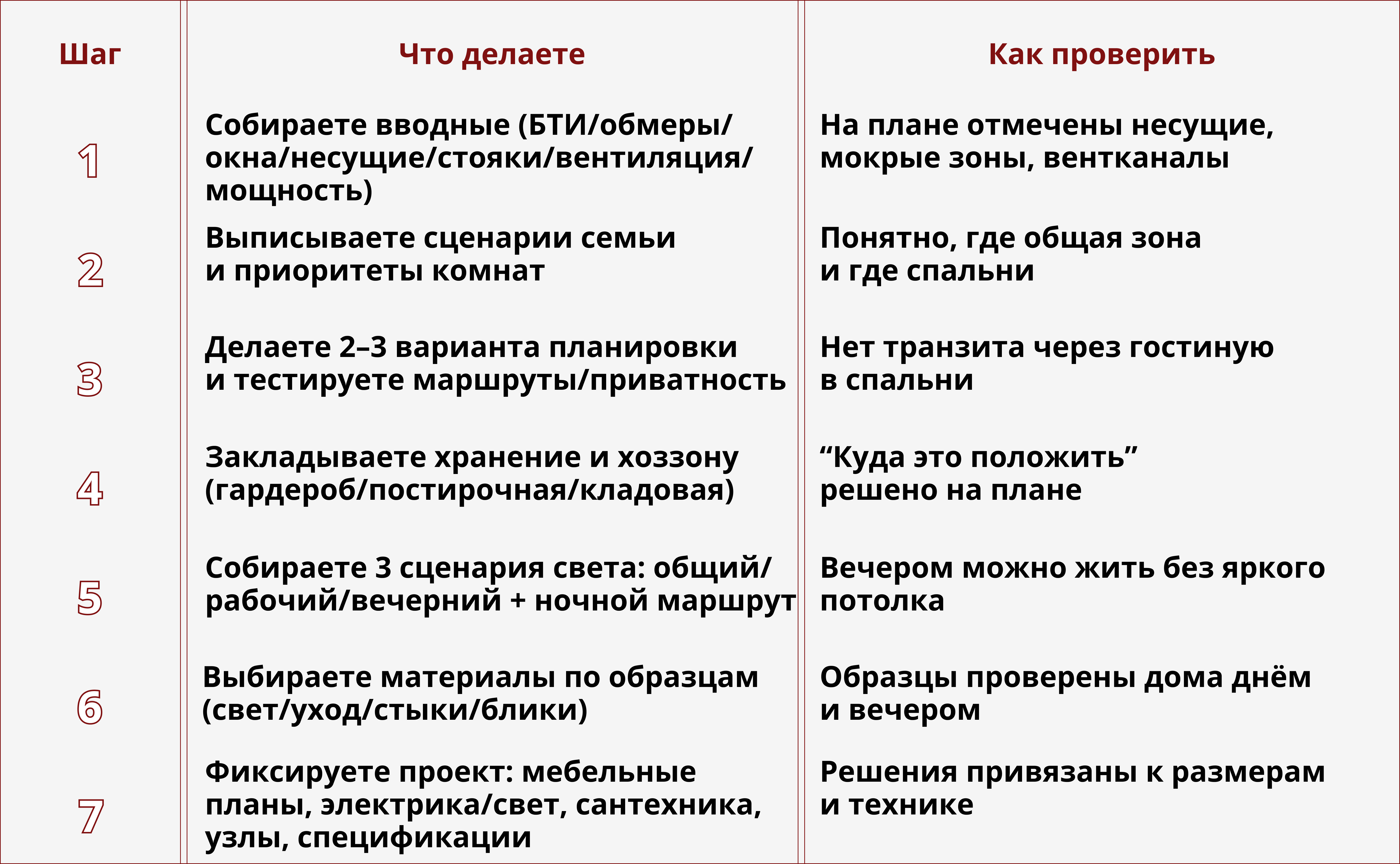 Что делать: сделать отдельный свет в прихожей (линейный, подсветка шкафа/зеркала), убрать лишние глухие перегородки там, где это возможно.