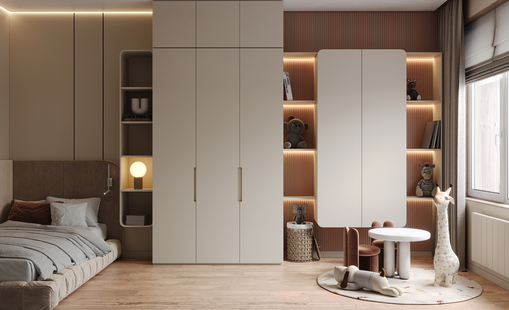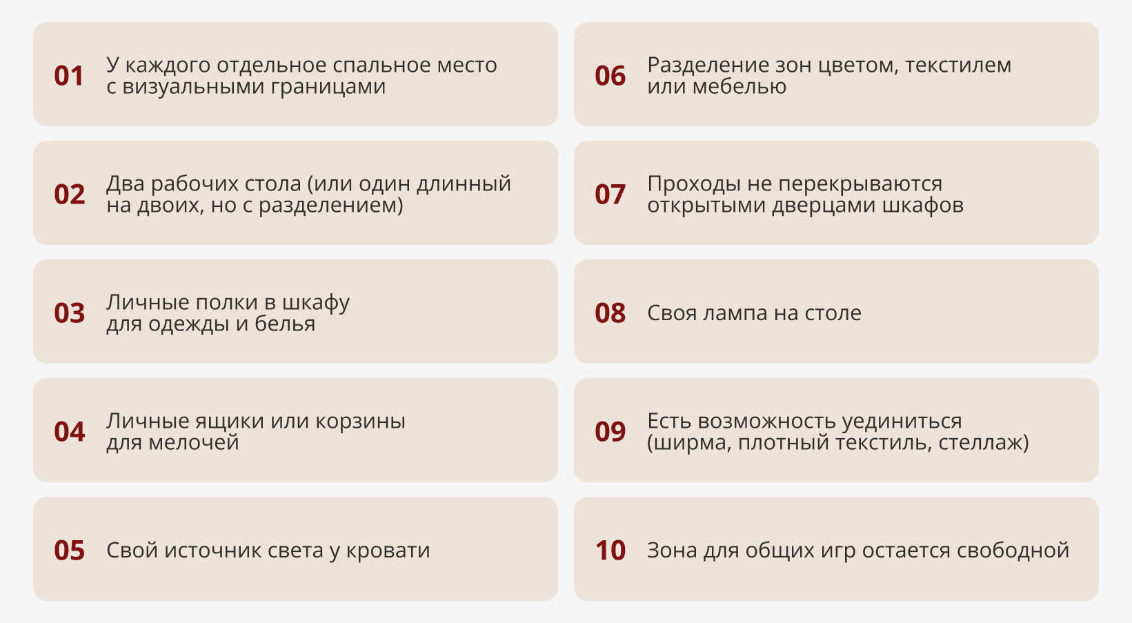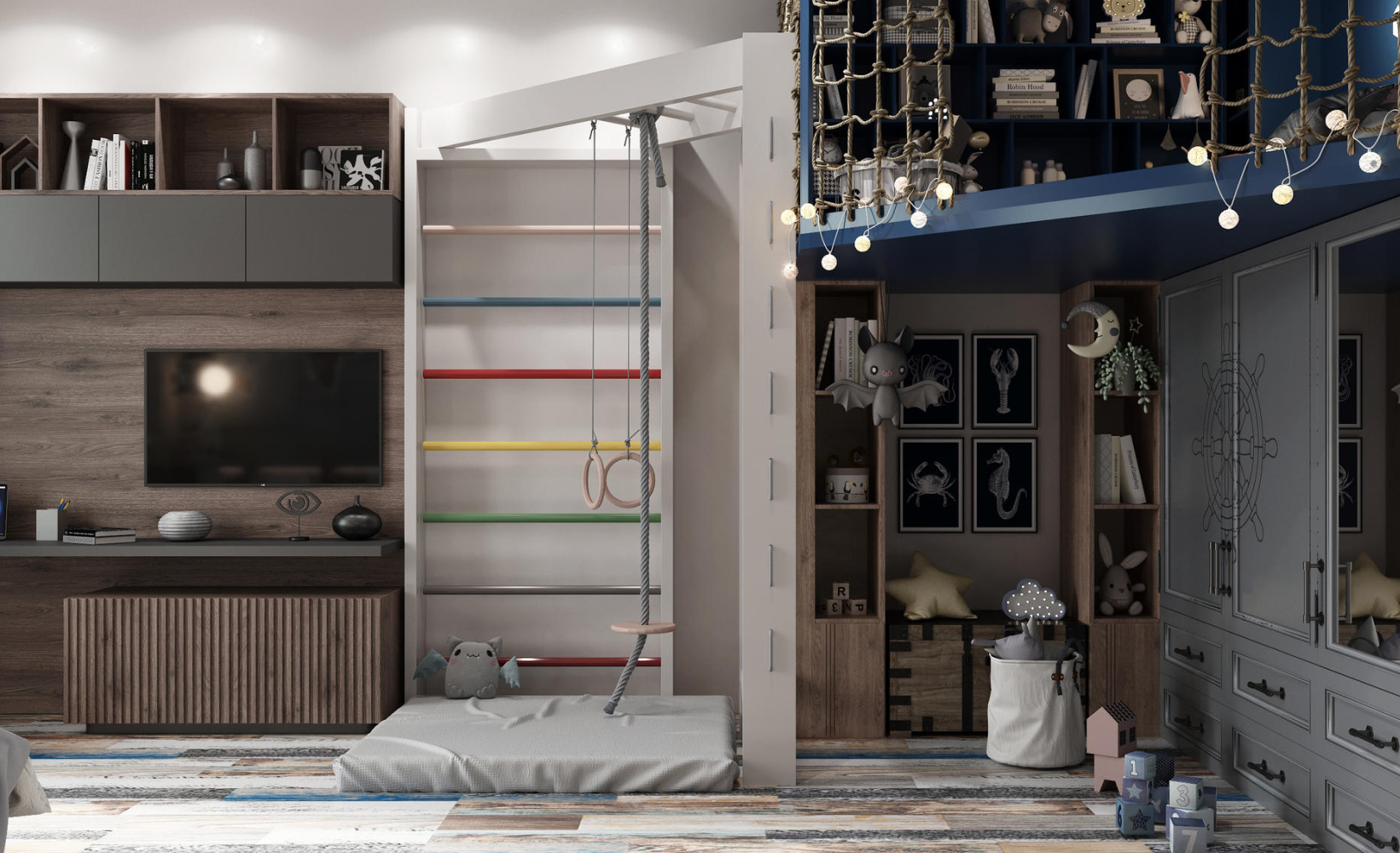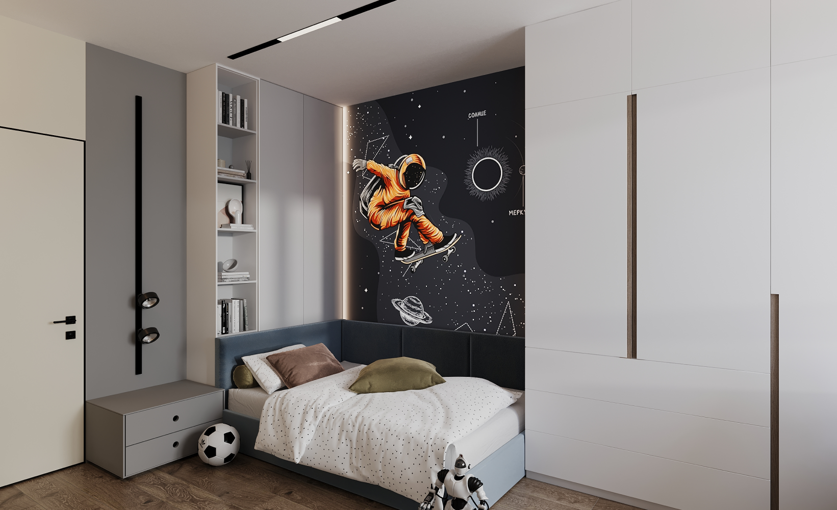 Розетки. У стола — 3–4 штуки для лампы, ноутбука, принтера и настольных часов. У кровати — для ночника и зарядки телефона. В игровой зоне — для пылесоса, увлажнителя воздуха или проектора.