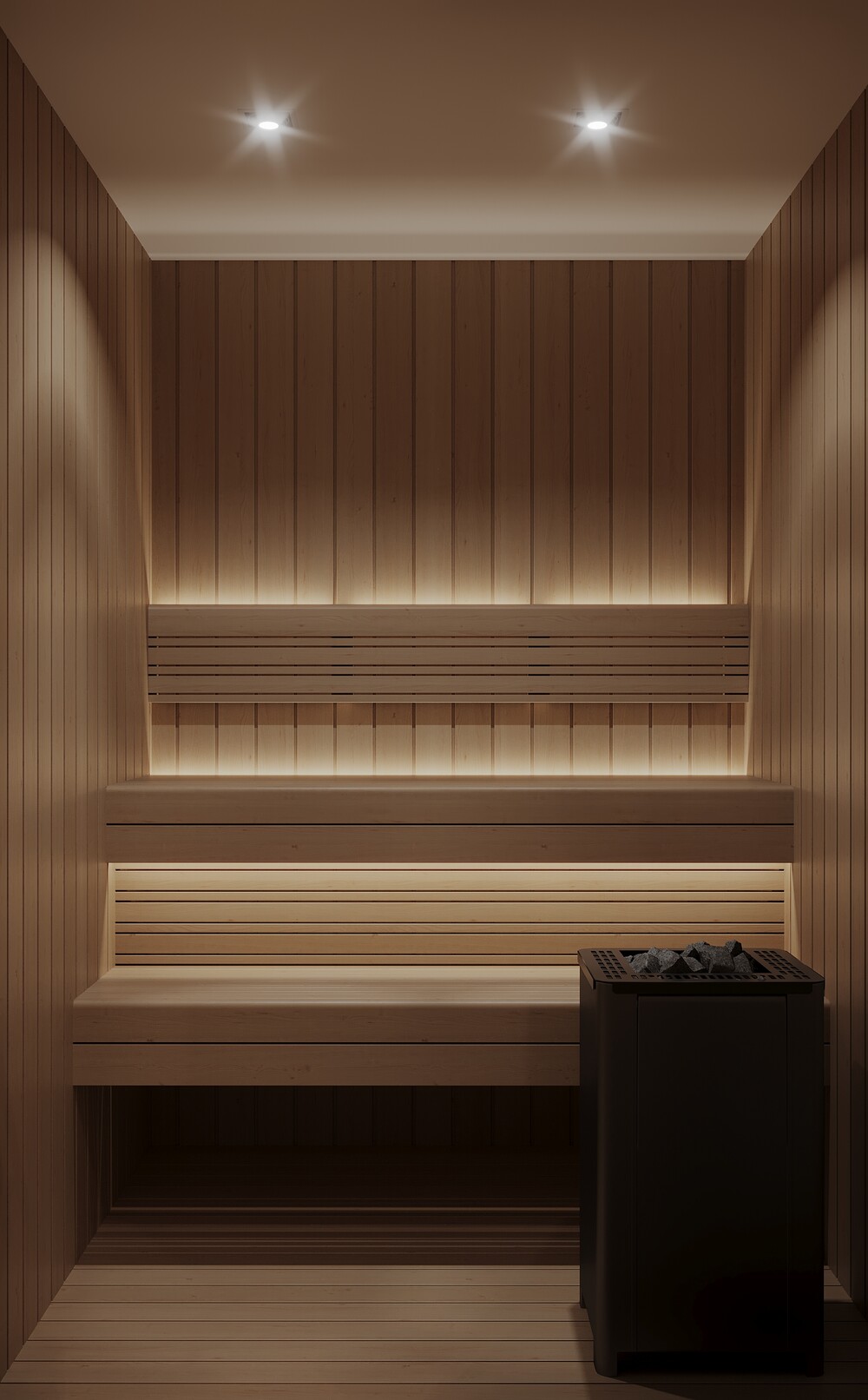 Скрытая сауна — полноценная зона отдыха, интегрированная в площадь стандартного санузла.