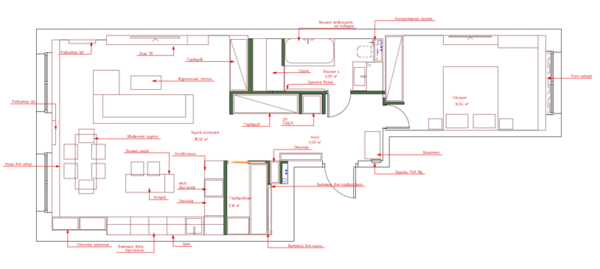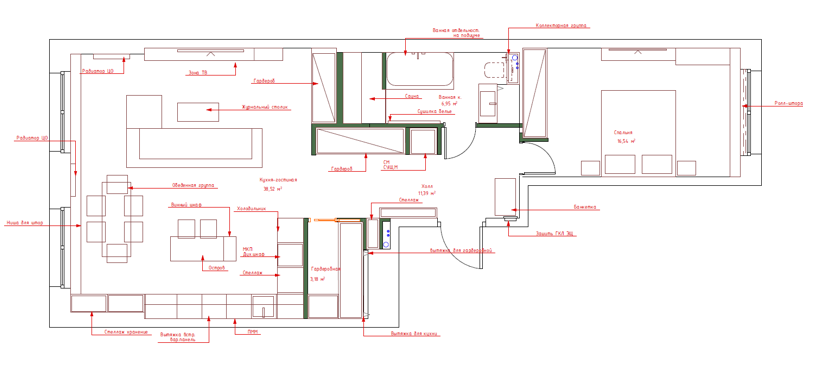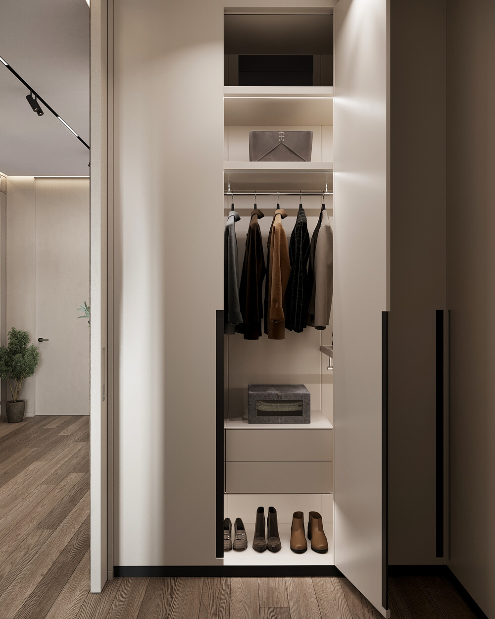 Спроектировать встроенные системы хранения без открытых полок и витрин.