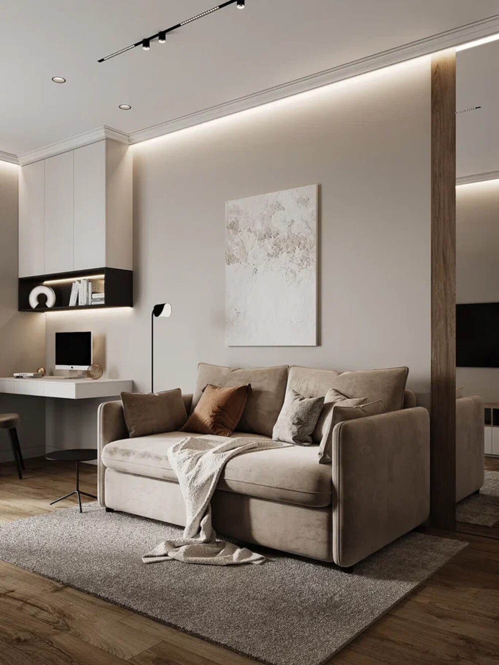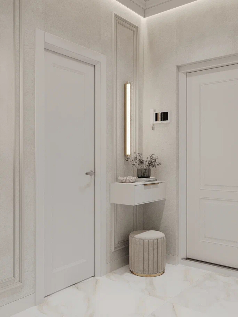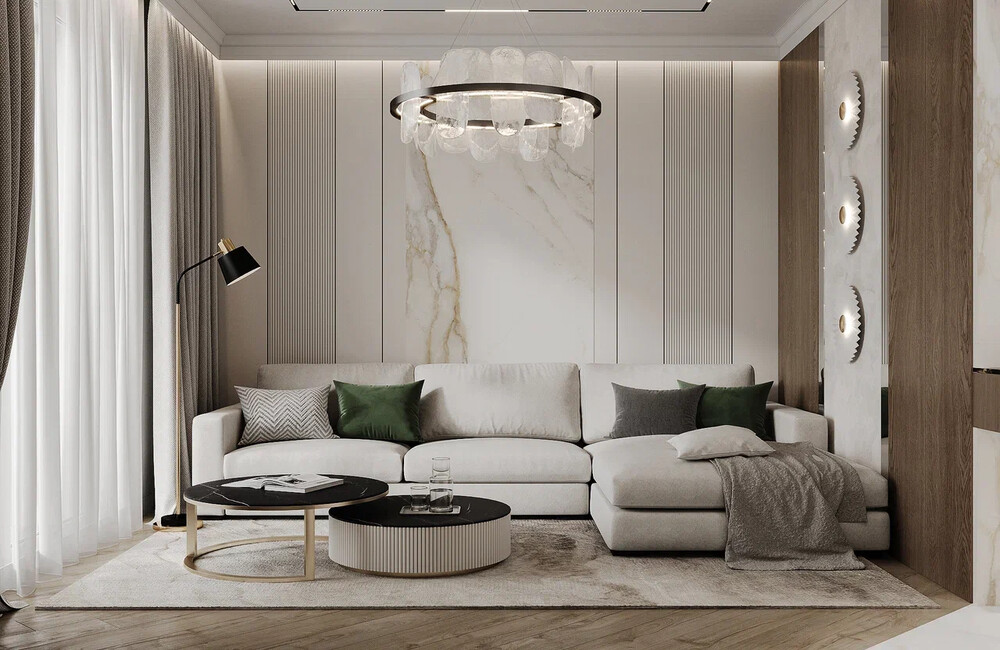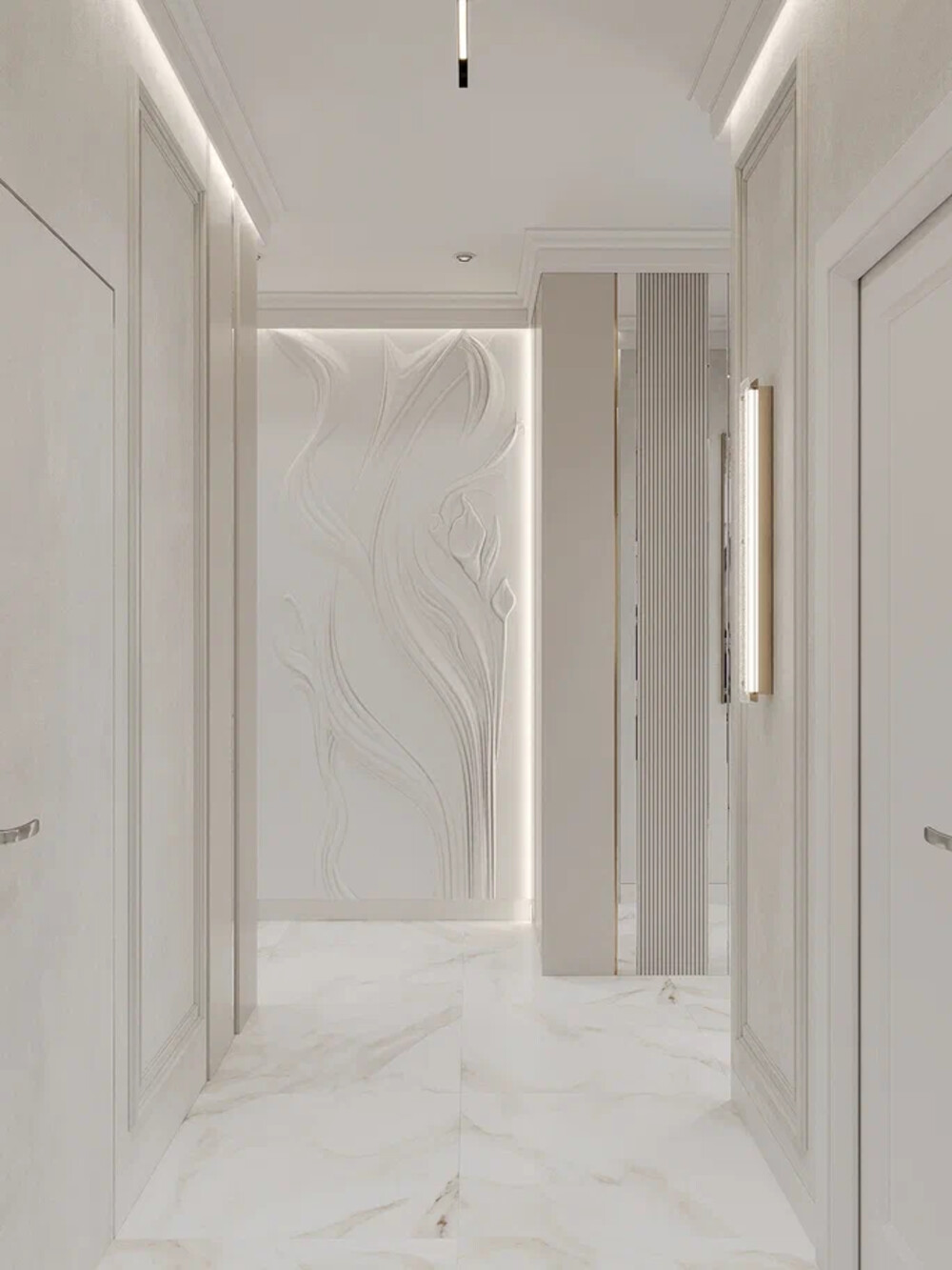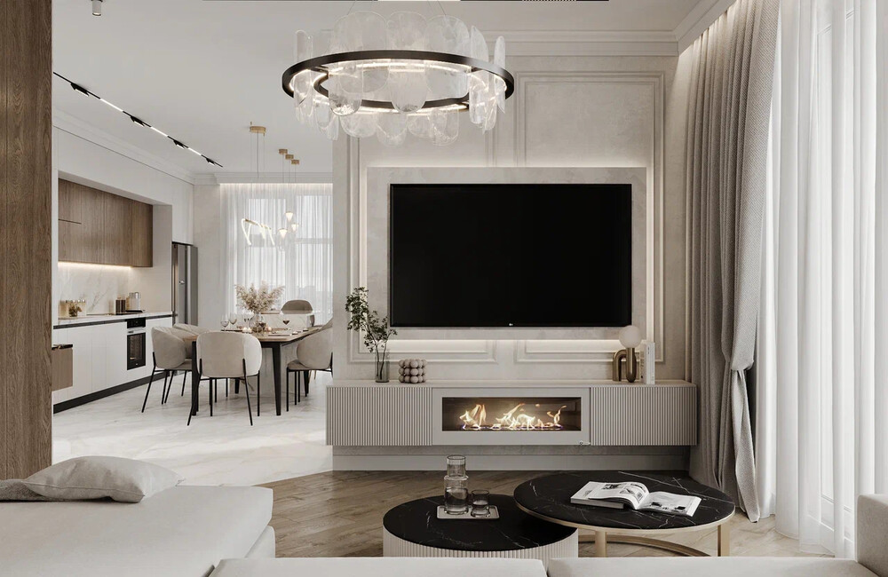 Молдинги, 3D-панели, и карнизы — выступают как тонкий декор, создавая рельеф без лишней вычурности.