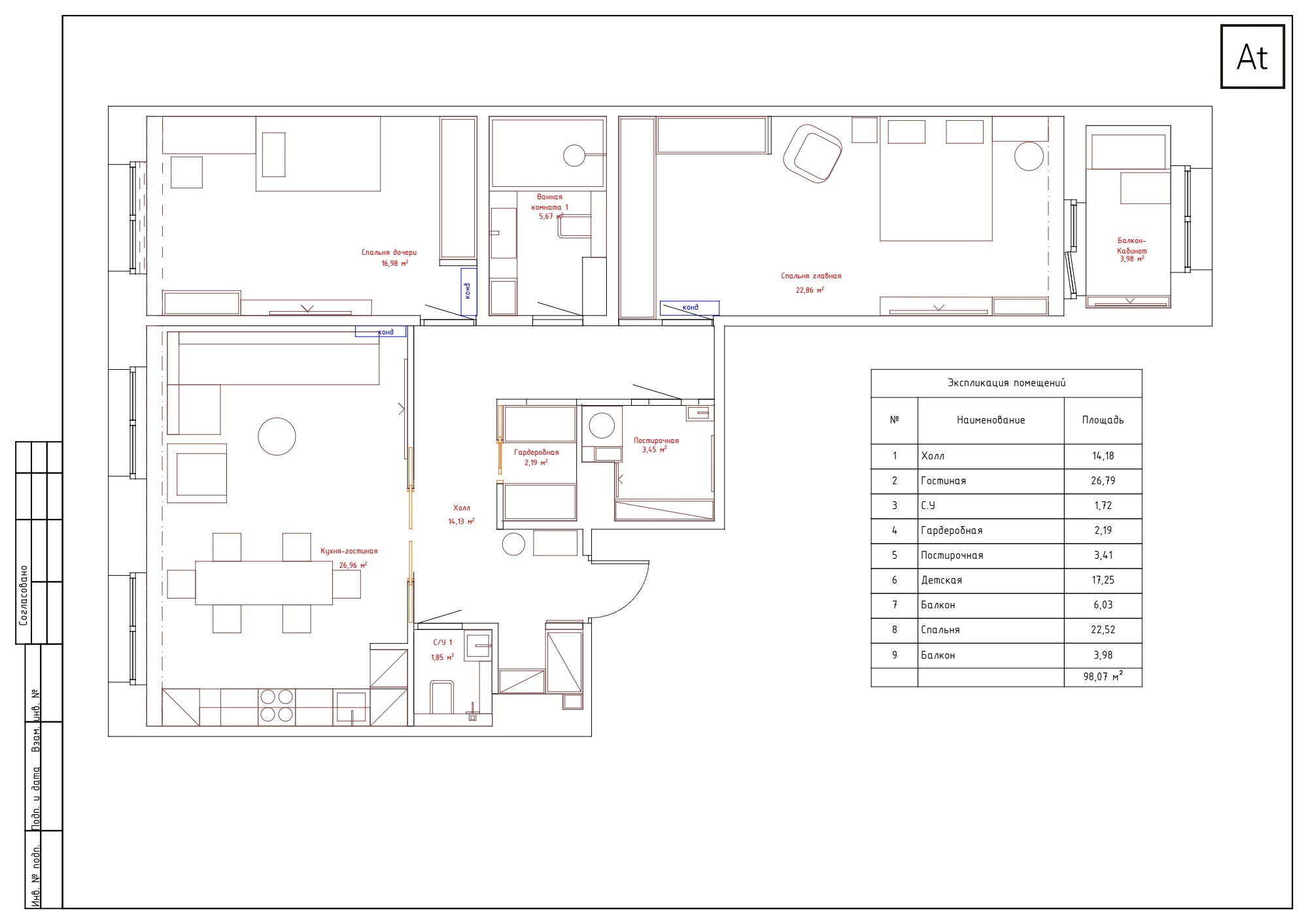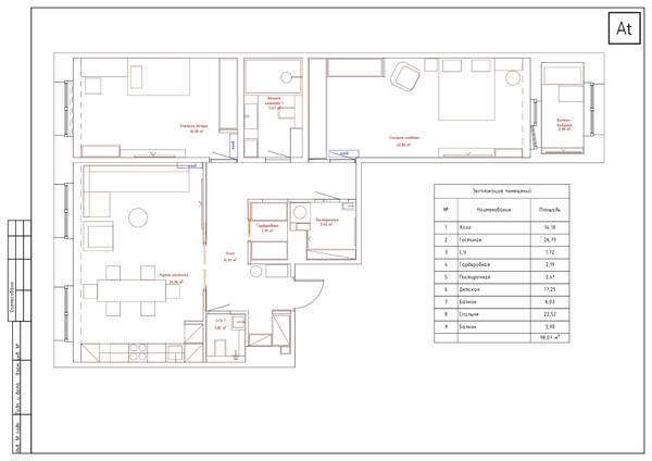 Спроектировать две полноценные спальни и объединенную кухню-гостиную.