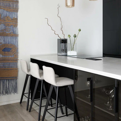 Отказ от традиционного кухонного гарнитура позволил сделать пространство легче и функциональнее. Остров стал центром готовки и общения.