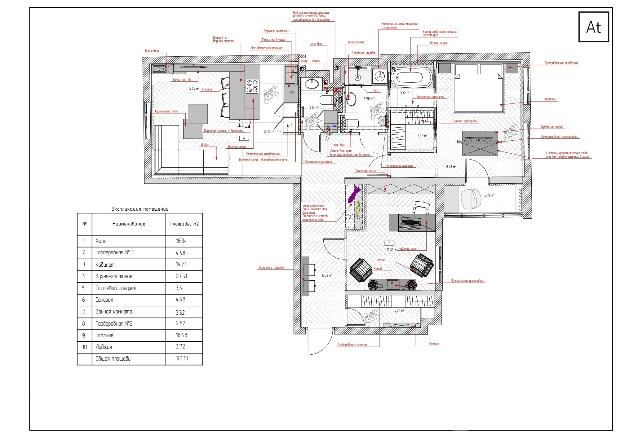 Разработать игровую систему и спальные места для домашних животных.