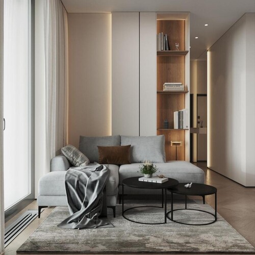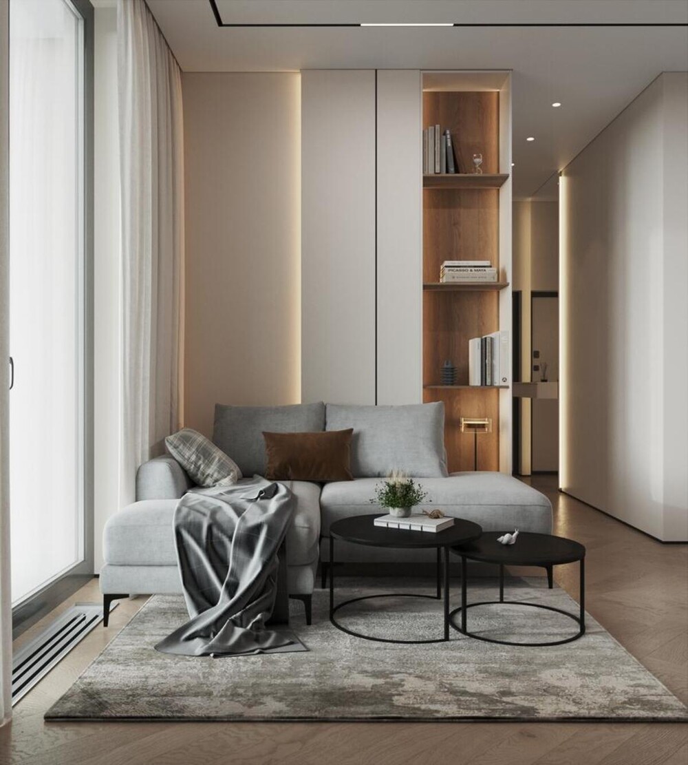 Скрытая подсветка стеллажей — превращает обычное хранение в декоративный элемент и служит дополнительным источником света.