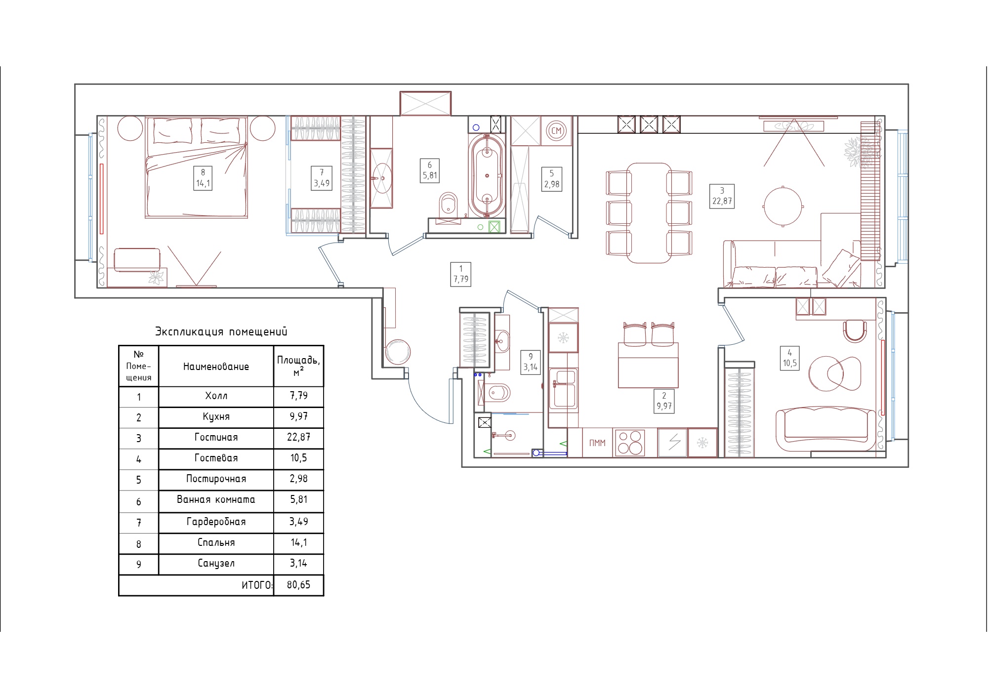 Спроектировать гостевую комнату с возможностью переустройства в детскую.
