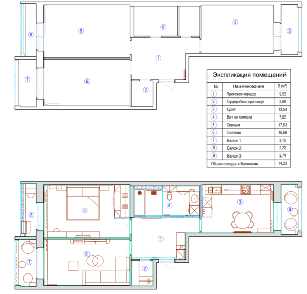 Дизайн-проект квартиры в ЖК «Витебский парк» в Санкт-Петербурге с элементами минимализма — 79 м²