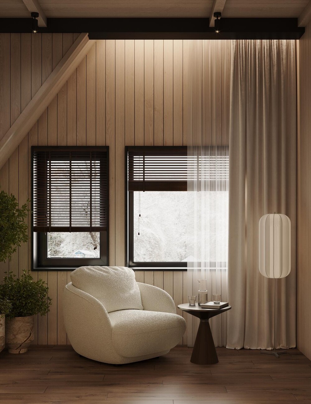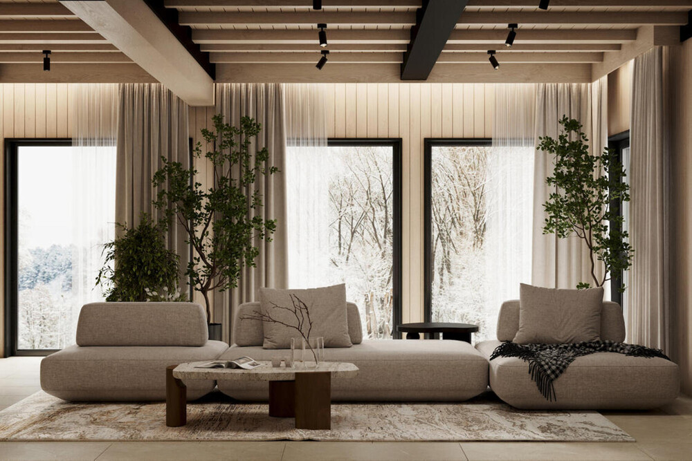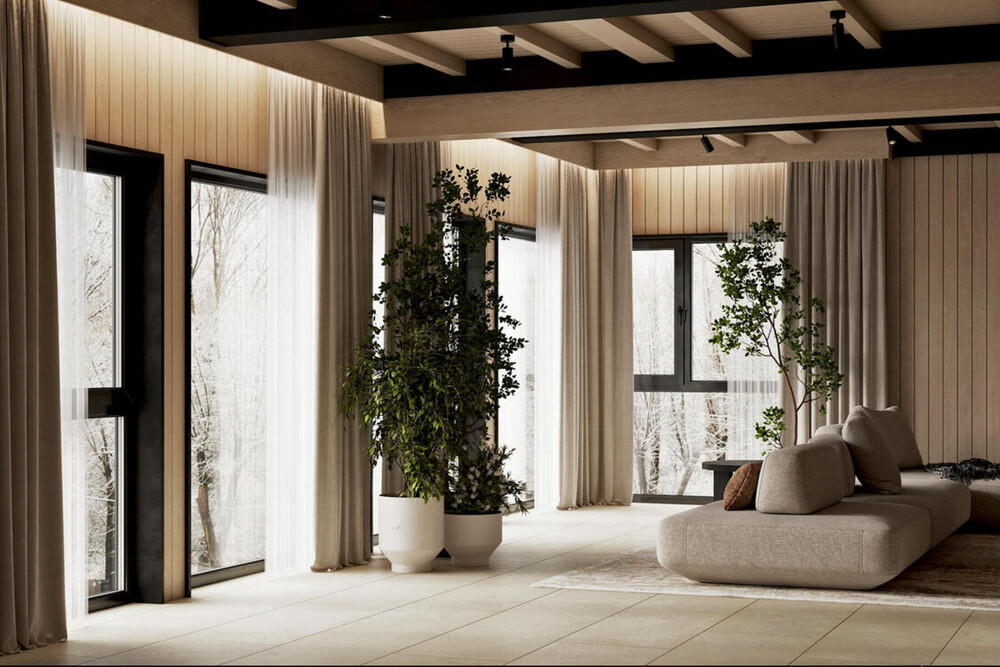 Дизайн-проект загородного дома в стиле джапанди в коттеджном поселке «Образ Жизни. Лесная деревня» в ЛО