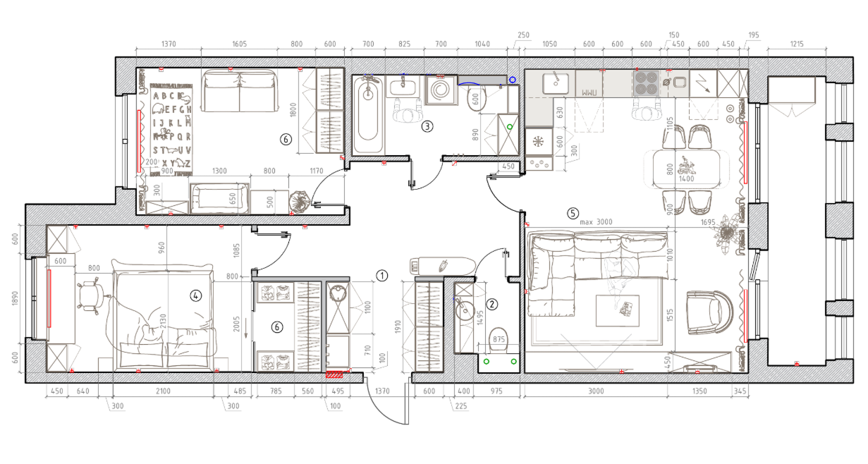 Пространственное мышление: умение анализировать планировки и находить неочевидные решения, понимание, как расставить мебель, чтобы было комфортно, способность работать с замерами и чертежами.