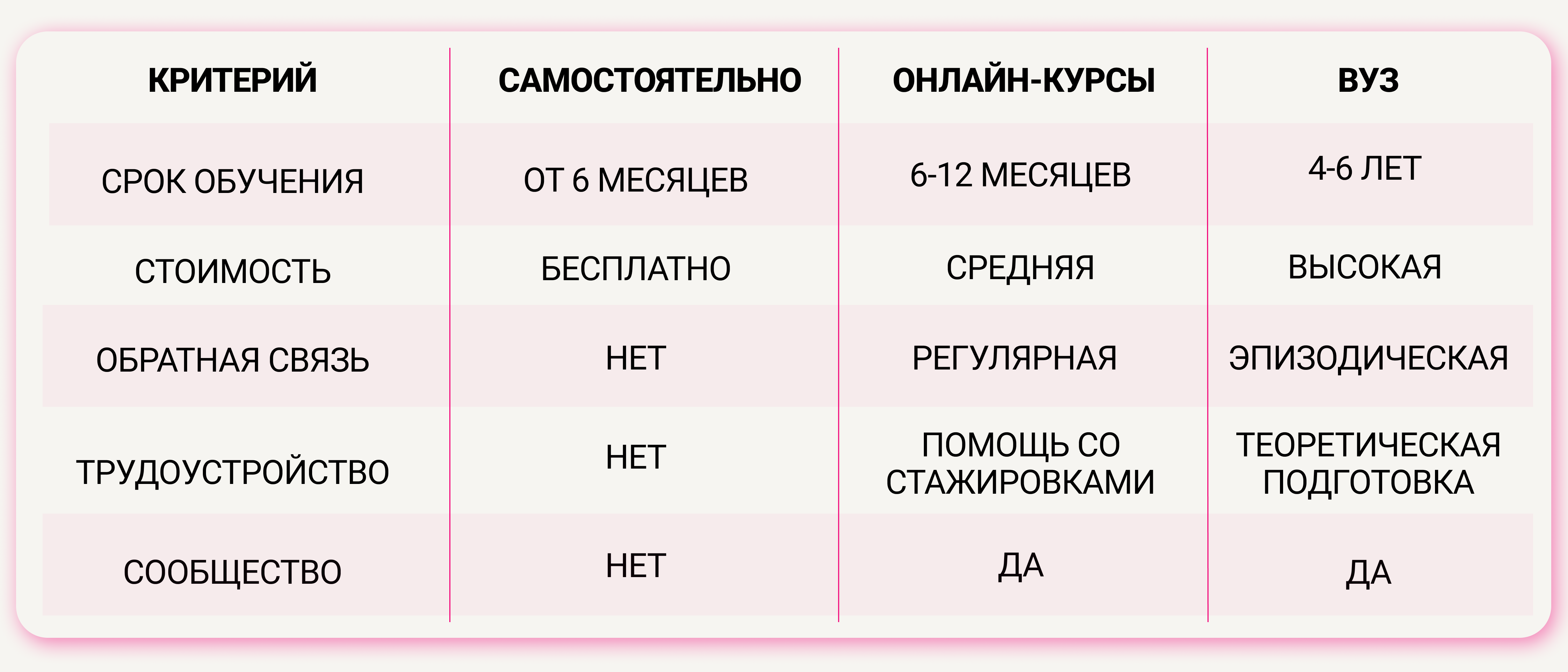 Большинство из перечисленного не требует ни врожденного таланта, ни специального образования. Если будете регулярно практиковать, то ощутимый прогресс заметите уже через 3-4 месяца. Как раз этот набор умений — а не способность рисовать или знание сотни стилей — составляет основу профессии.