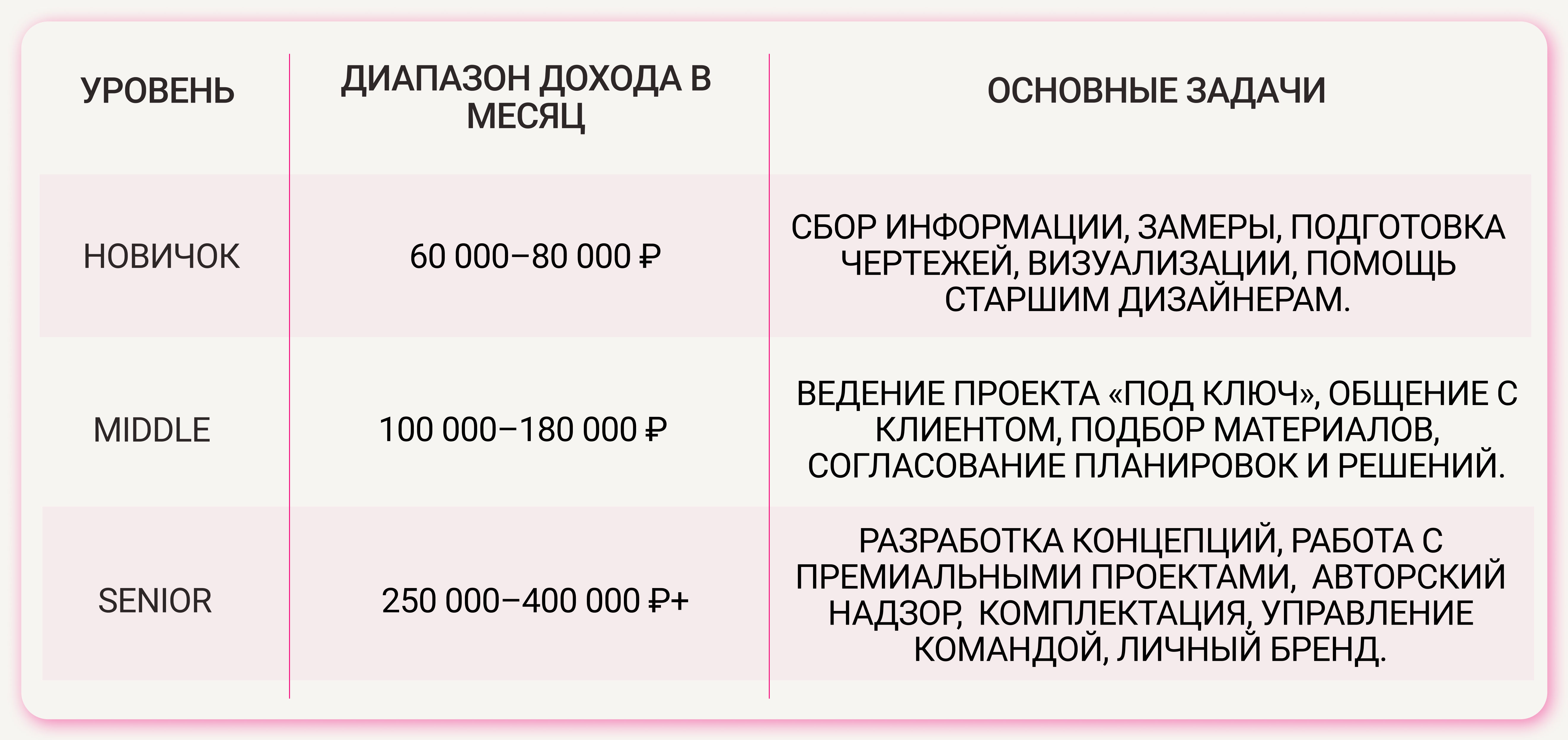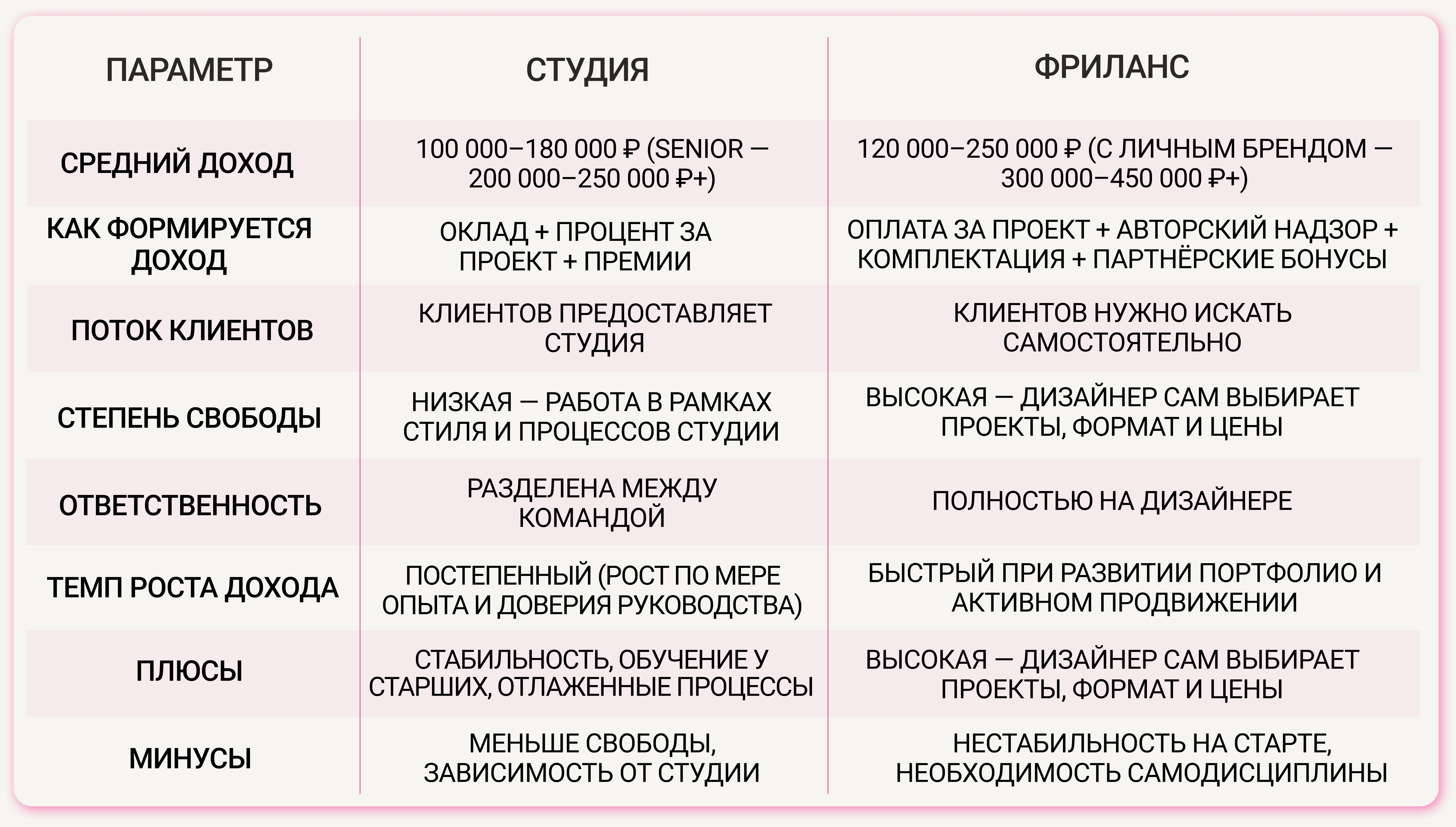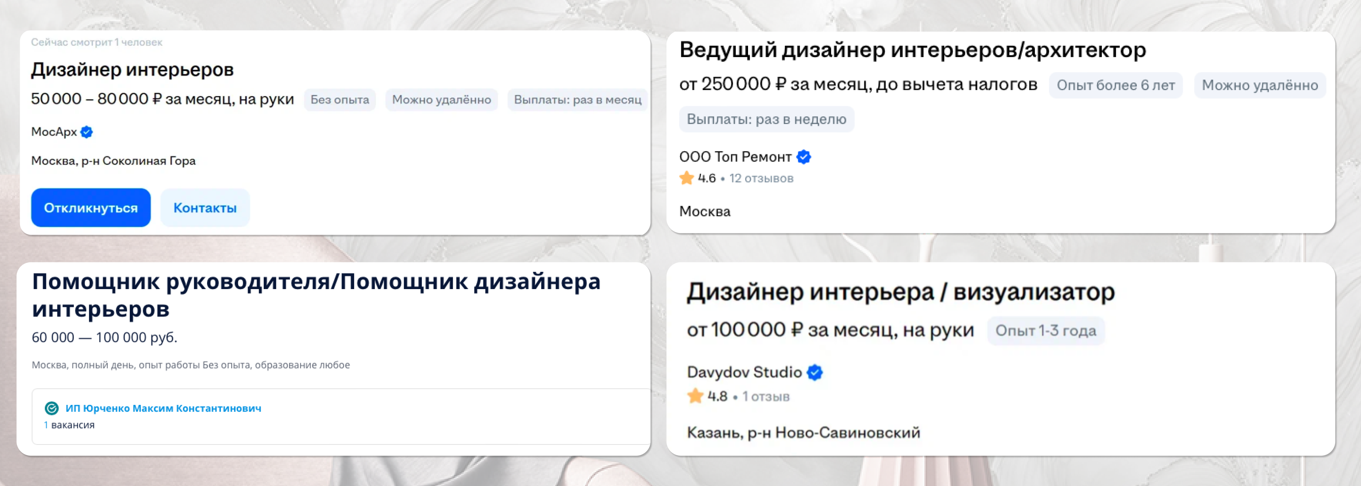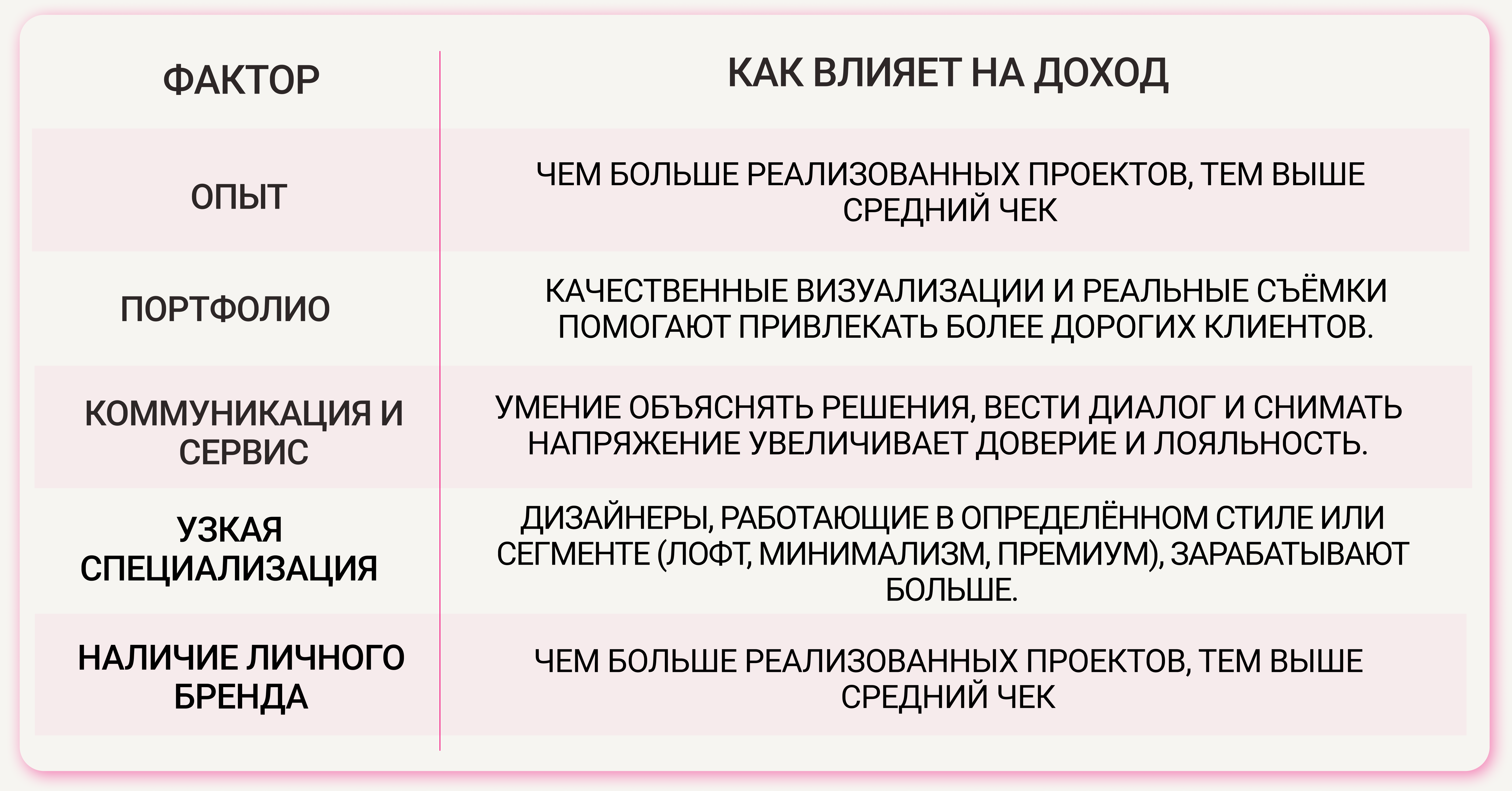 Сегодня клиенты выбирают не только проект, но и личность дизайнера. Сильный бренд уменьшает конкуренцию и позволяет назначать цены выше среднего. И это влияет на то, какая зарплата у дизайнера интерьера.