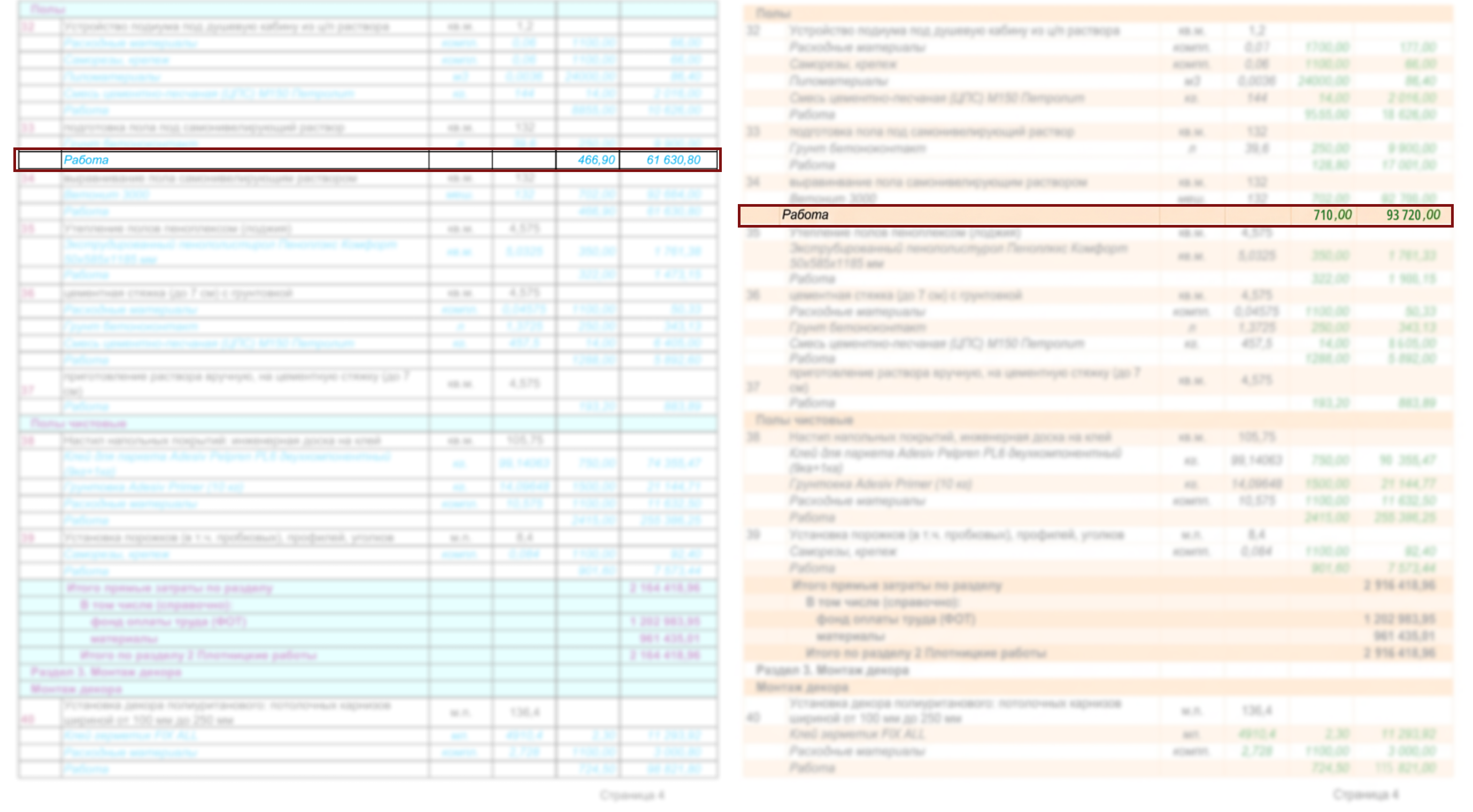 Сравнивая два расчета, смотрите на объемы. У одного подрядчика площадь штукатурки может быть 150 квадратов, а у другого 80. Разница в сумме будет очевидна. Но первый заложил выравнивание стен, а второй только локальную шпаклевку.