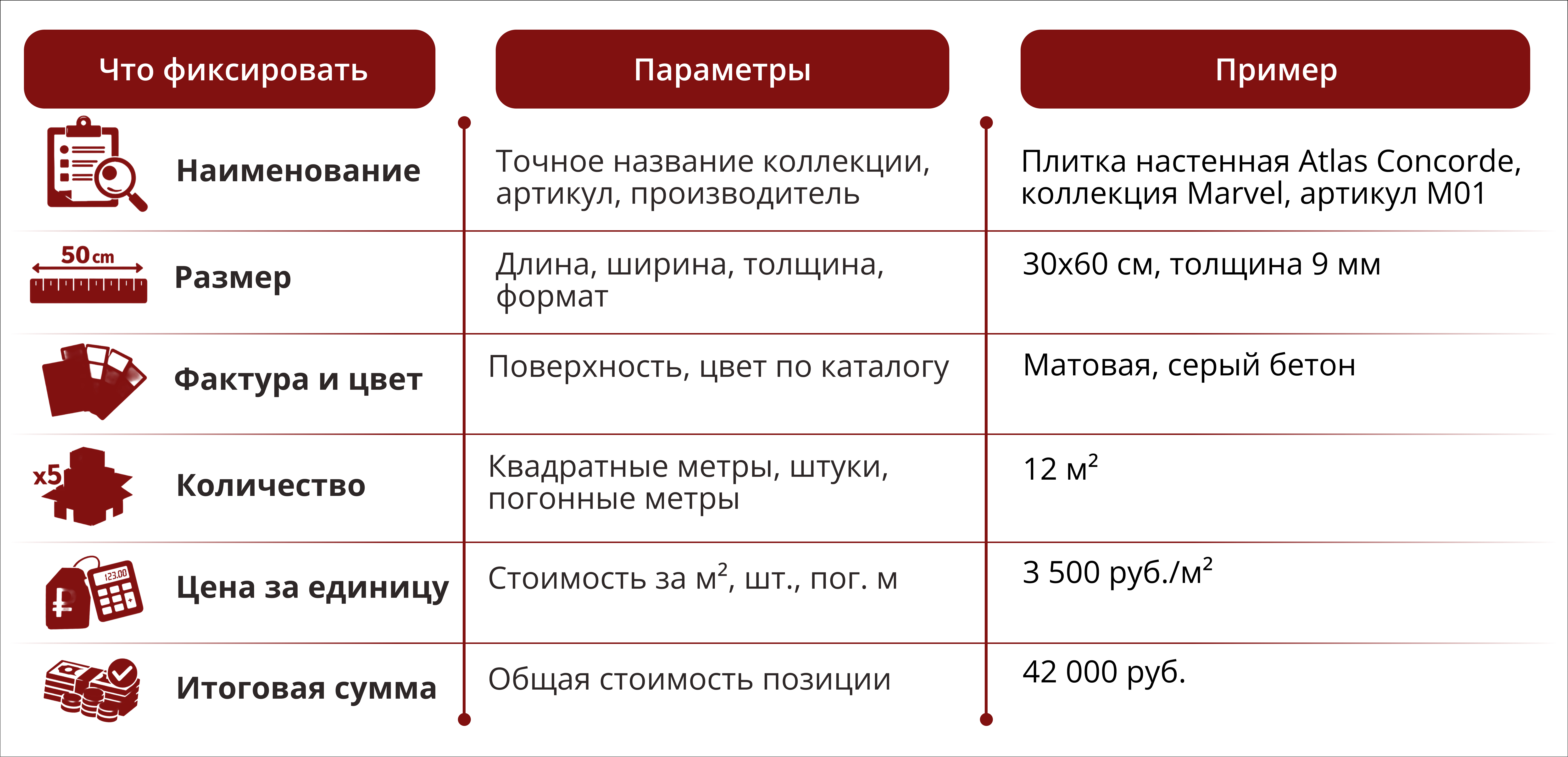 Разделы должны содержать наименование, единицу измерения, объем, цену за единицу и итоговую сумму. Если перед вами список из пятидесяти пунктов без группировки, будет сложно контролировать, что оплачено, а что нет.