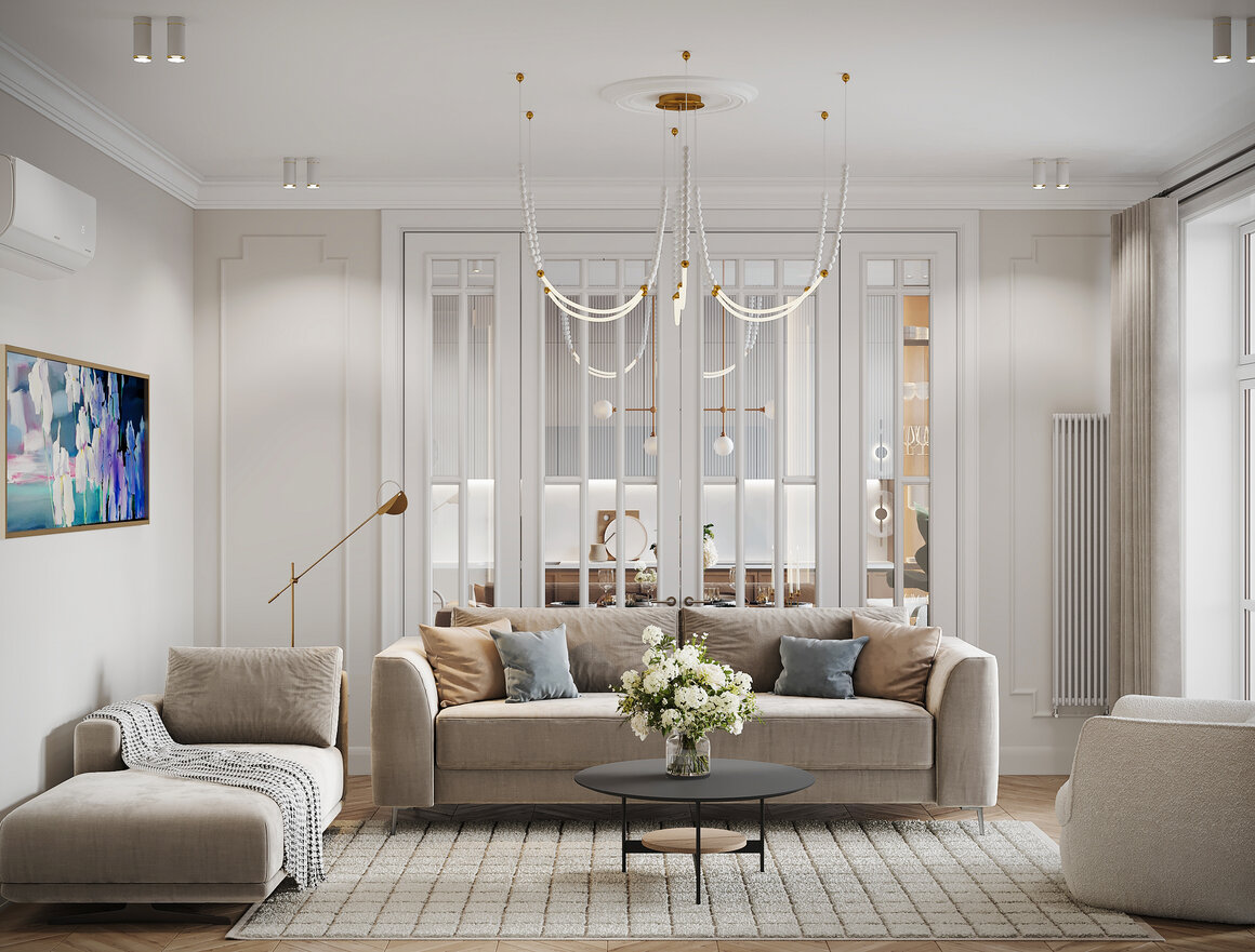 Дизайн-проект квартиры в ЖК «Champine (Шампайн)» в Москве в стиле современной классики — 129,5 м²