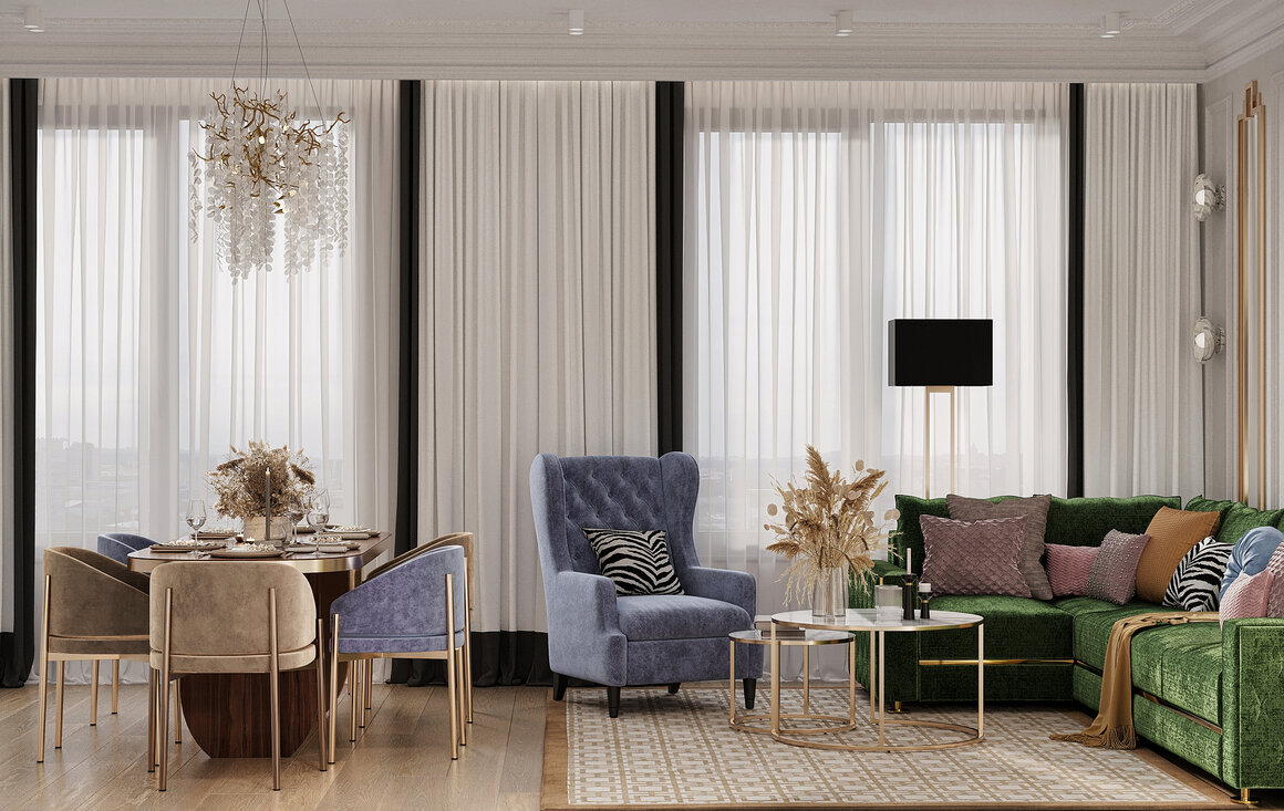 Дизайн интерьера квартиры в ЖК «Остров» в Москве с элементами неоклассики и арт-деко — 99 м²