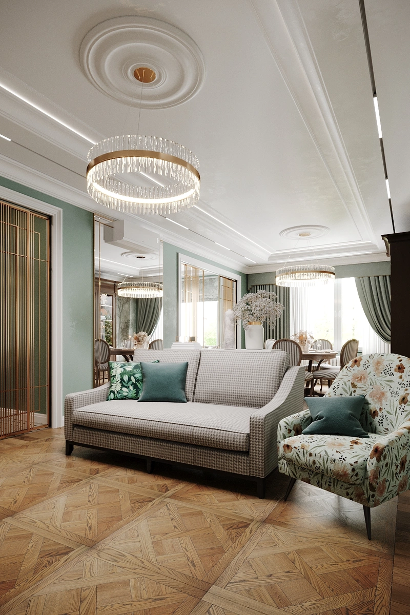 Цветная неоклассика в дизайне интерьера квартиры в ЖК "Русский Дом" — 137 кв. метров