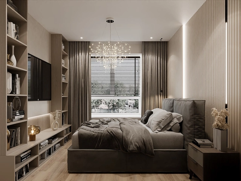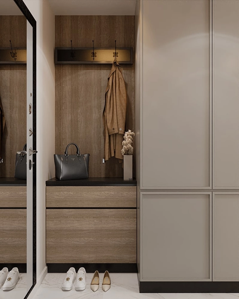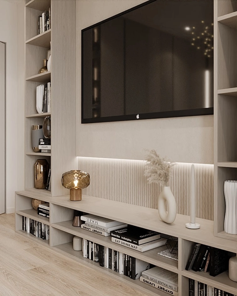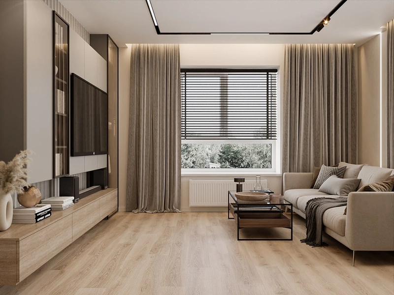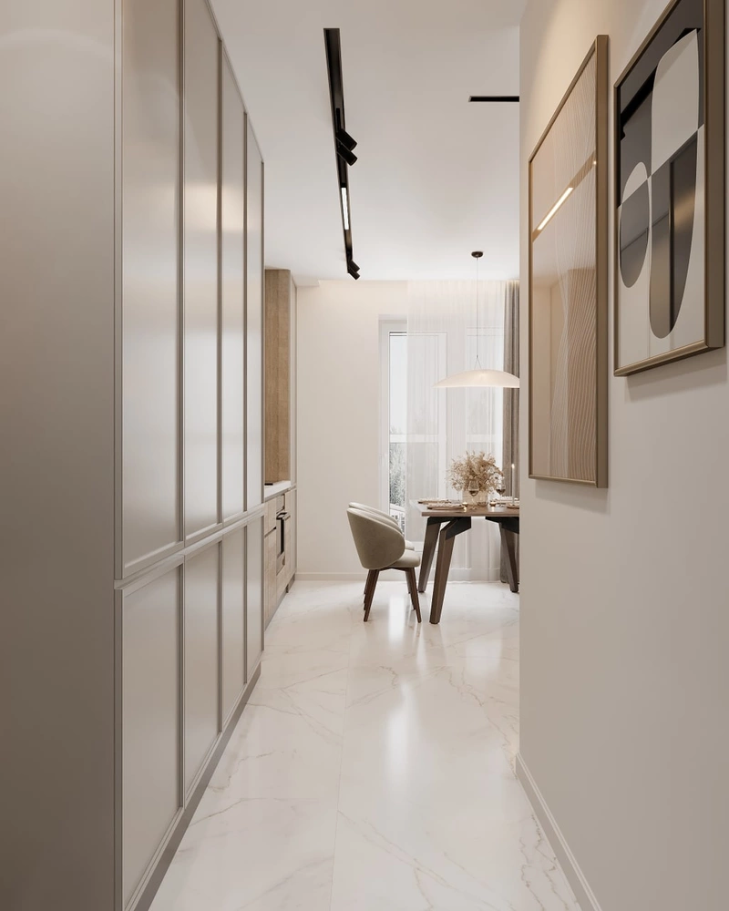 Дизайн интерьера квартиры в стиле бежевый минимализм в ЖК "Богатырь" — 54 м2