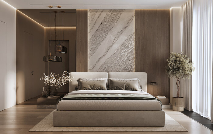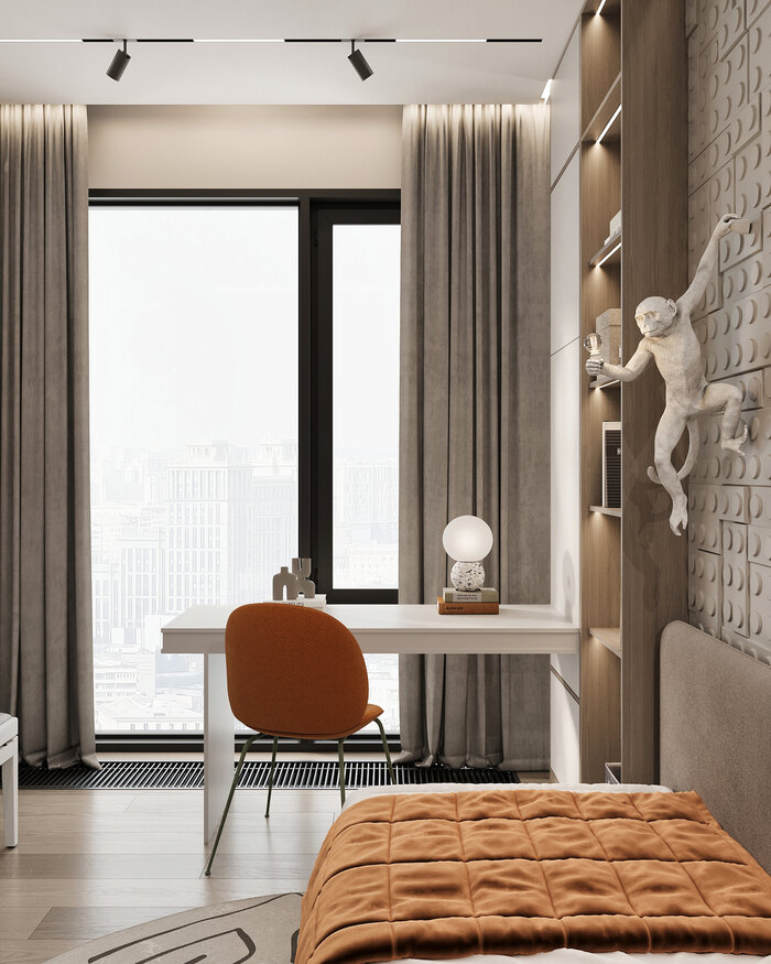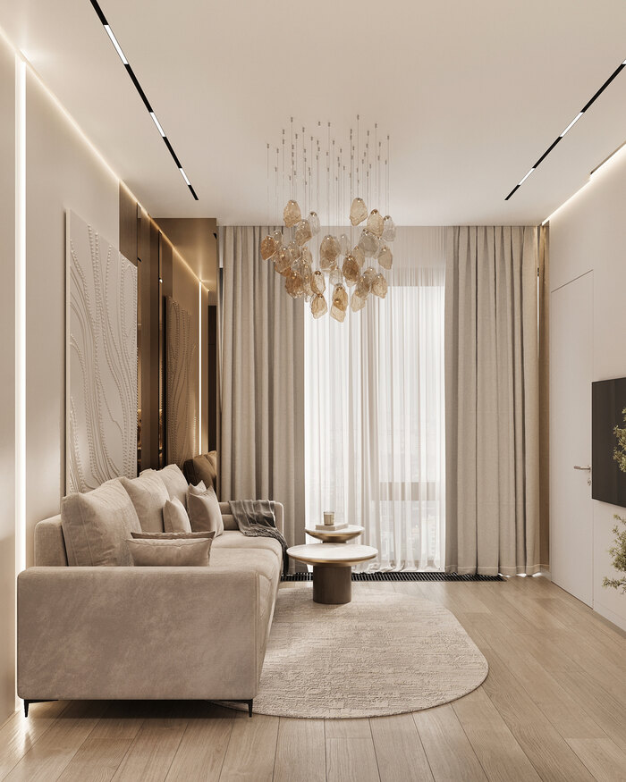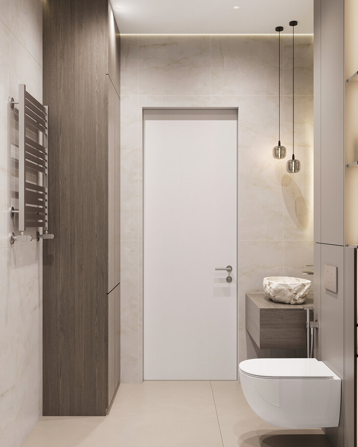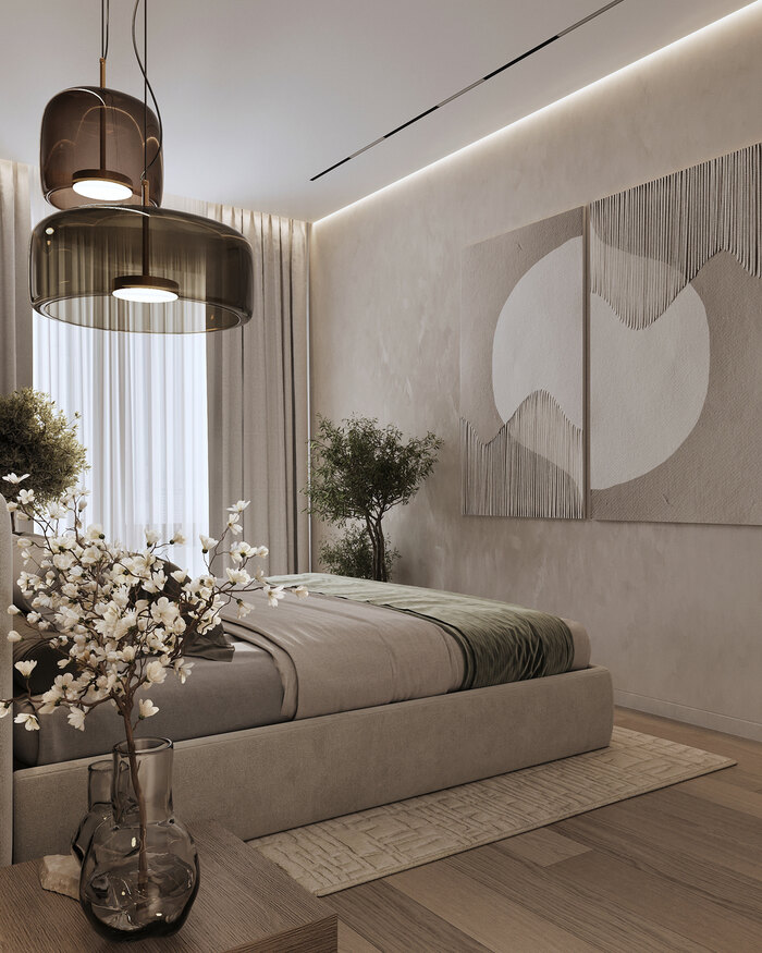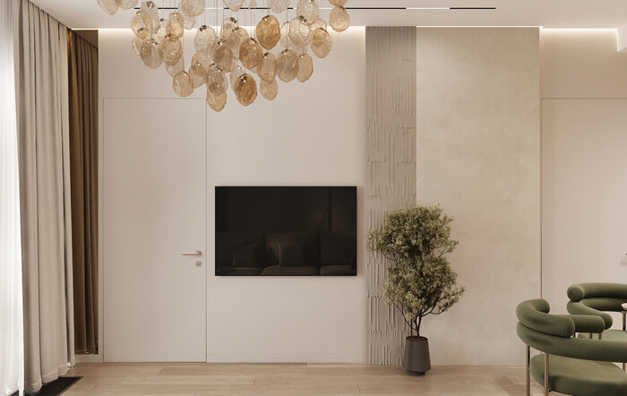 Cовременный дизайн интерьера с элементами экостиля и джапанди в ЖК "Symphony" - 93 м2