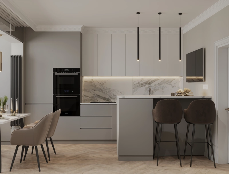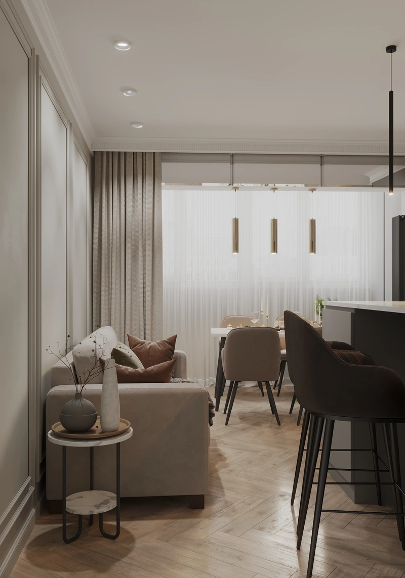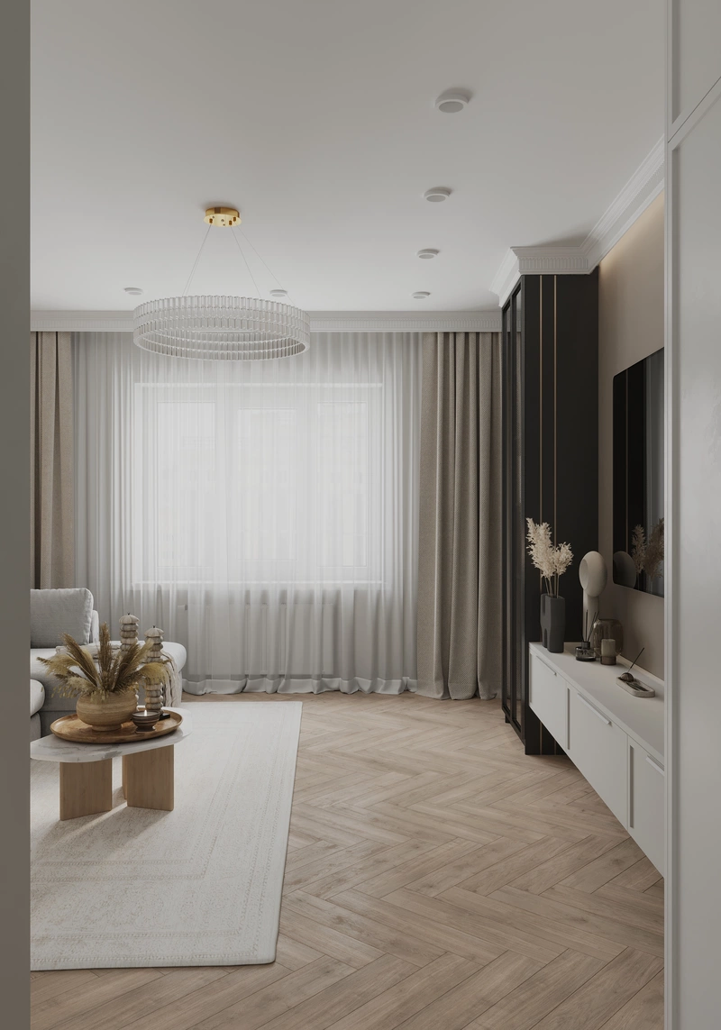 Посмотреть проектДизайн интерьера квартиры в стиле современная классика с элементами дерева 112 м²