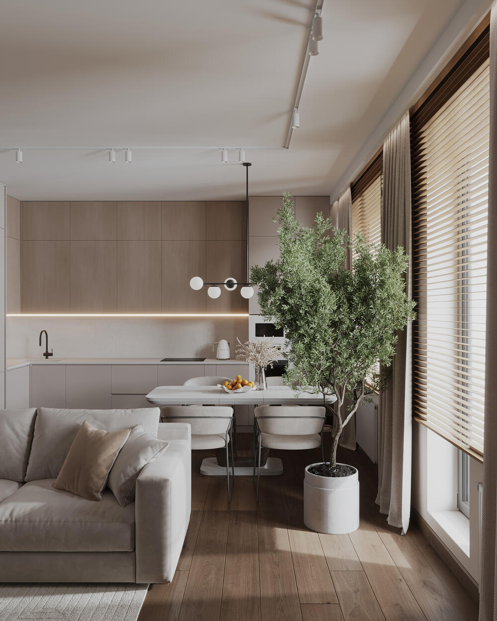 Дизайн интерьера квартиры в стиле минимализм и джапанди в ЖК «е.квартал «е.волюция» - 91 м²