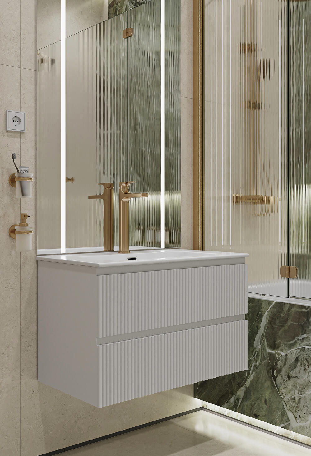 Мастер-санузел — это прежде всего про удобство и порядок. Мы разделили его на логичные зоны: умывальники, душ и хранение. Теперь они не конфликтуют между собой, и пользоваться всем можно одновременно.