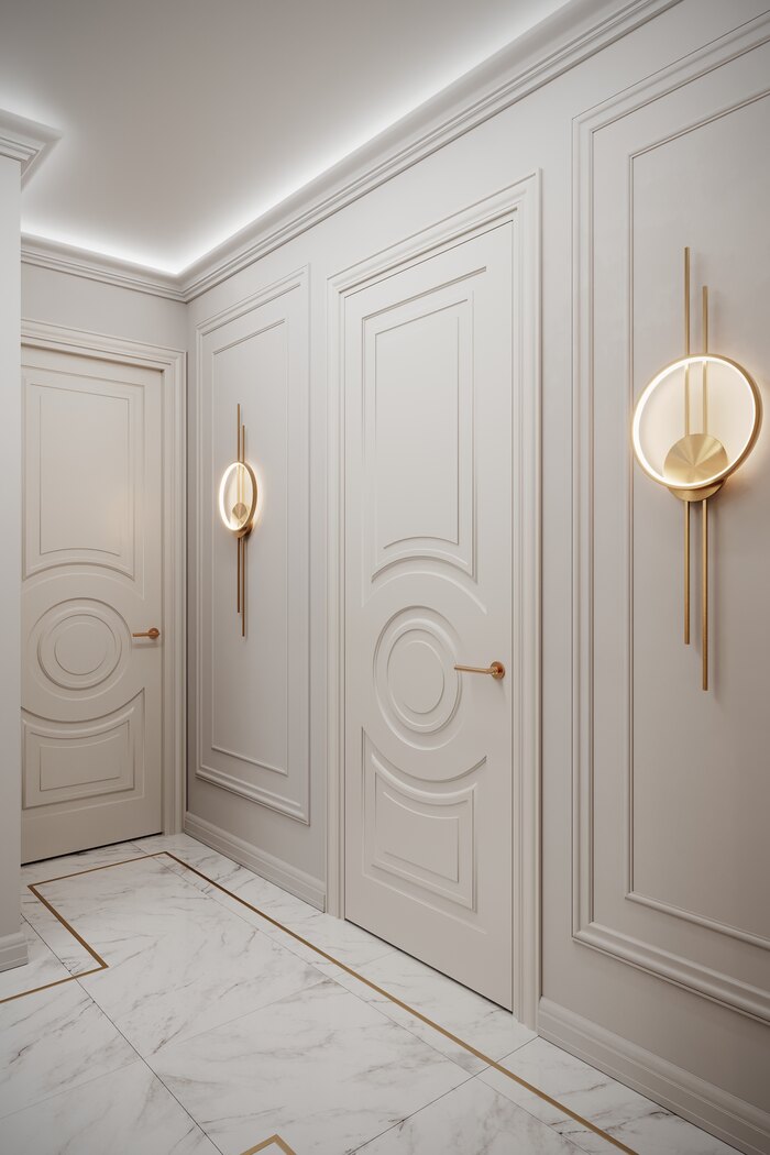 Лепнина — оформила потолки и стены, добавив интерьеру глубины и акцентов в стиле неоклассика.