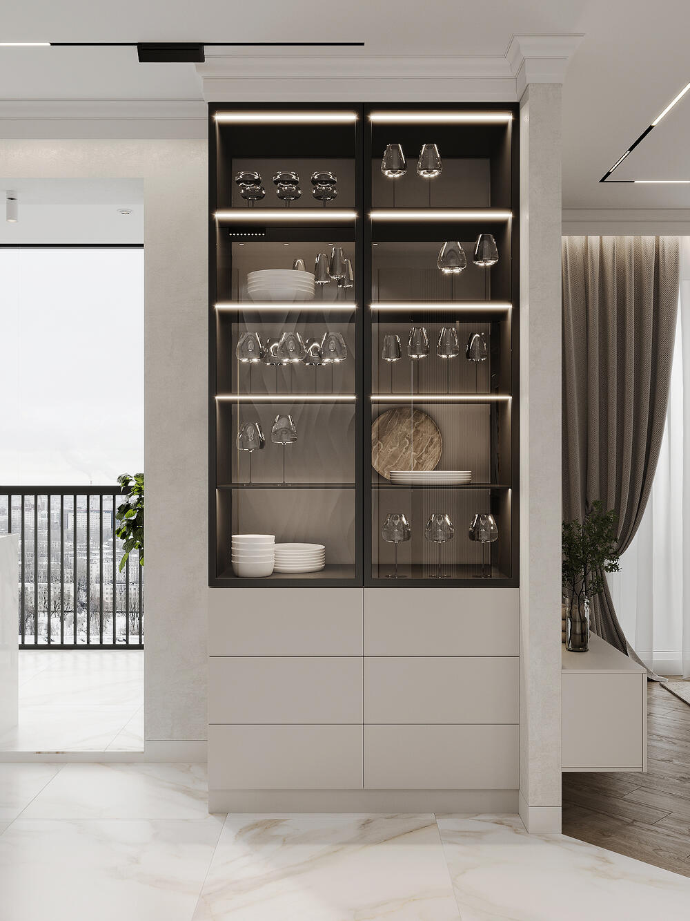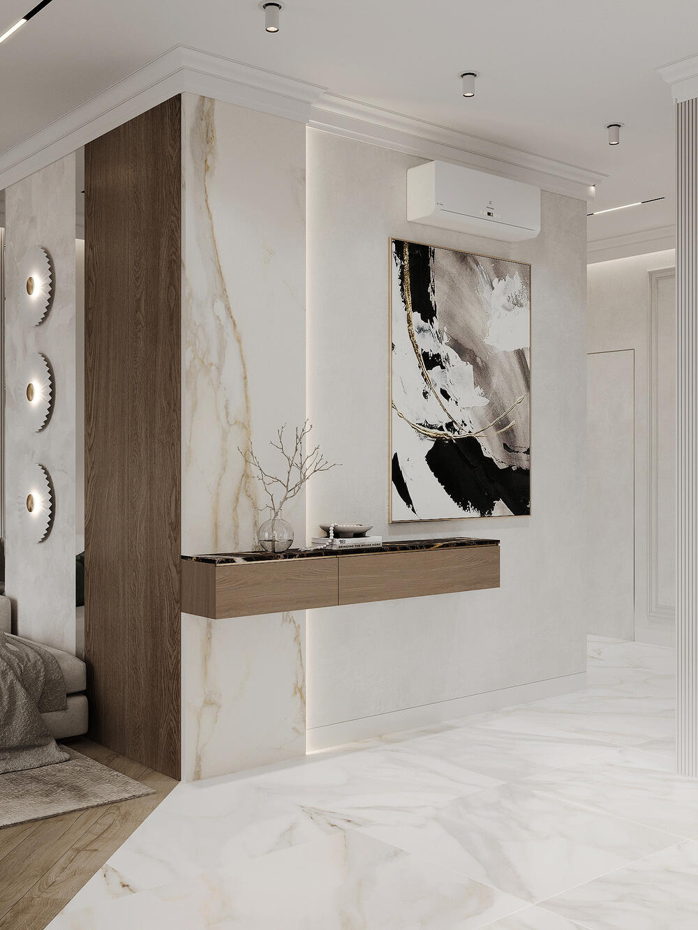 Дизайн интерьера квартиры в стиле современный минимализм с элементами классики в ЖК "Domino (Домино)" - 109 м2