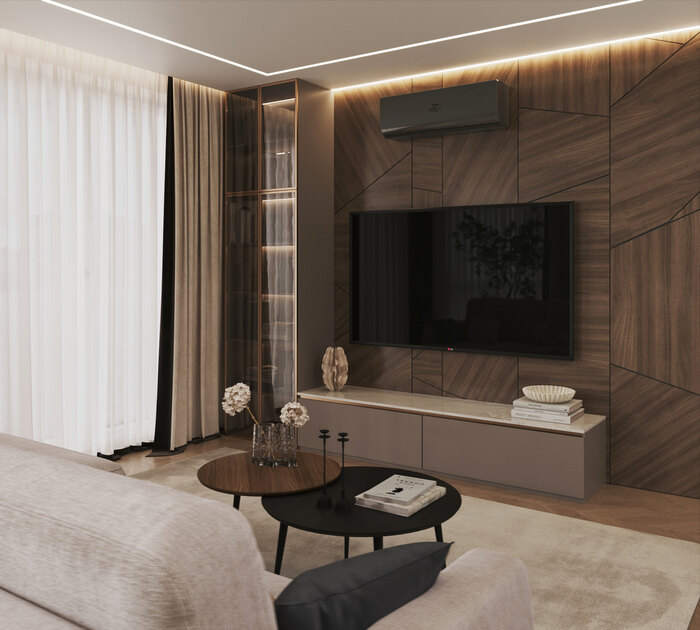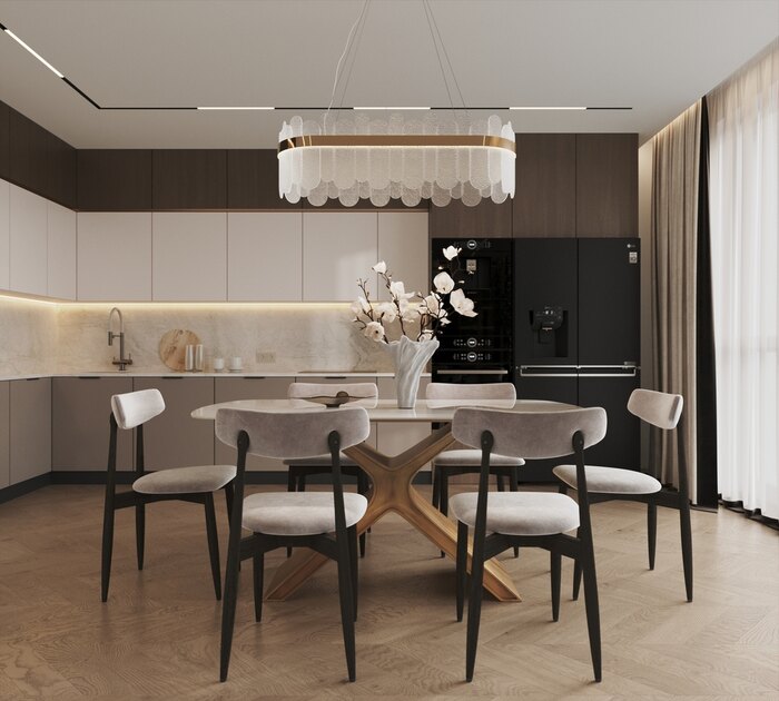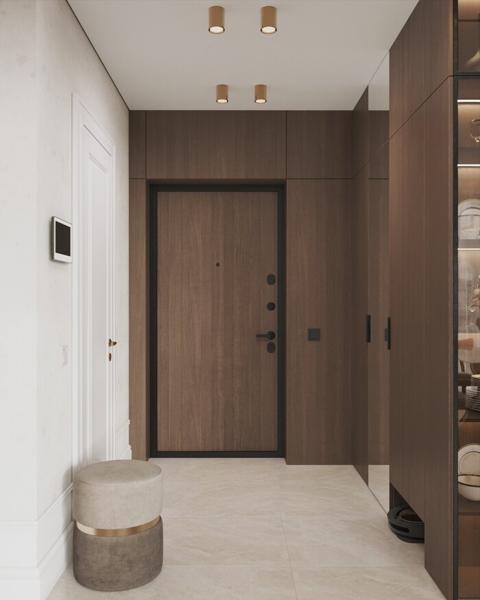 Дизайн интерьера квартиры в стиле современная классика с элементами дерева 112 м²