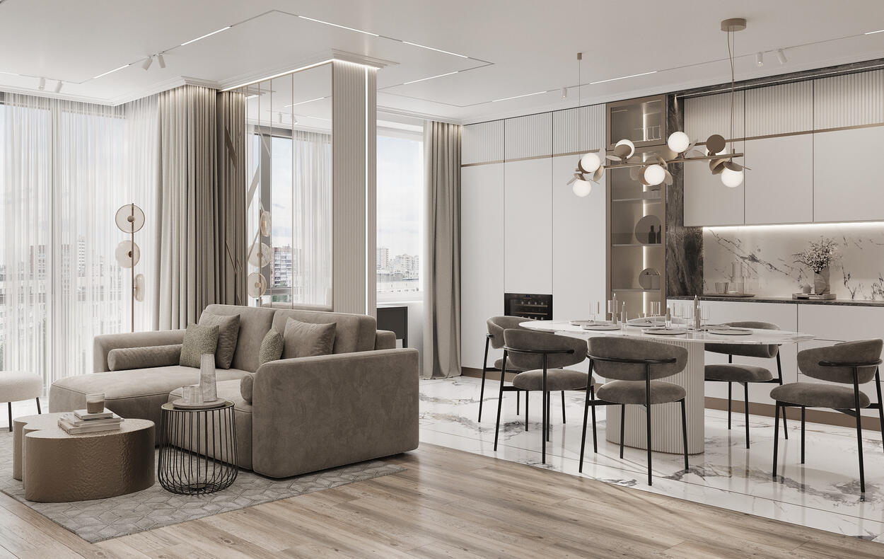 Дизайн интерьера квартиры в стиле неоклассика в ЖК "Наука" - 173 м2