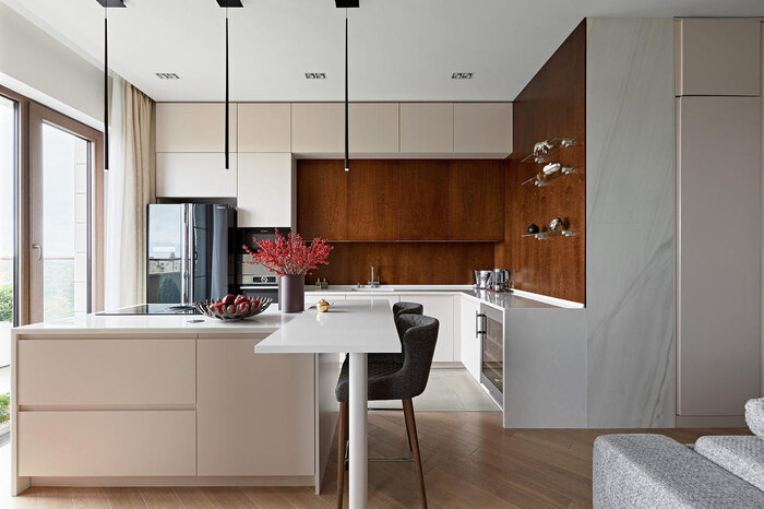 Дизайн проект интерьера и ремонт квартиры в стиле минимализм и эко-шик в ЖК "Привилегия" — 194 кв. метра