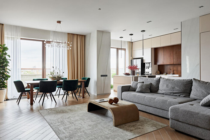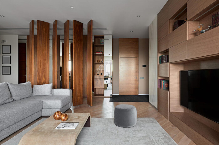 Посмотреть проектДизайн интерьера квартиры в стиле современная классика с элементами дерева 112 м²