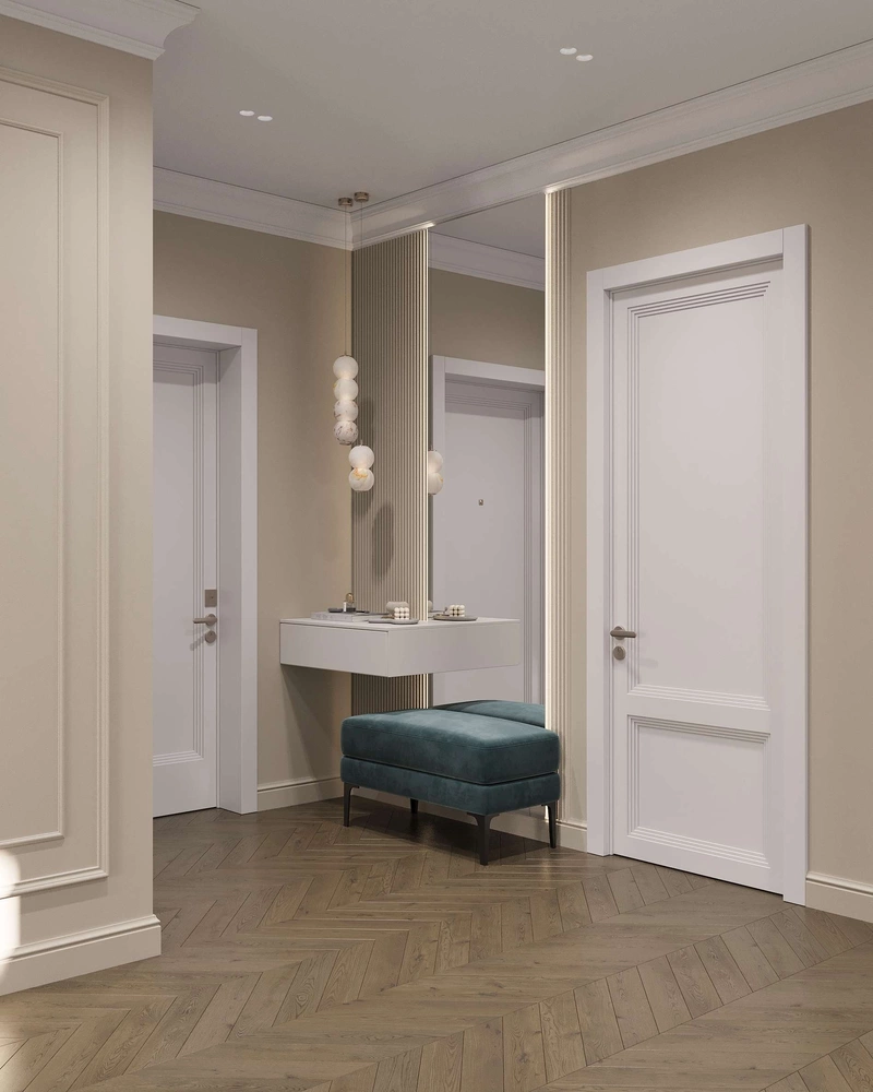 Дизайн интерьера квартиры в ЖК «Северная корона» в стиле неоклассика - 90,5 м²