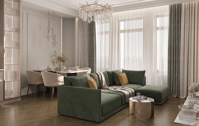 Посмотреть проектДизайн интерьера квартиры в ЖК "Петровская Доминанта" с зелеными акцентами