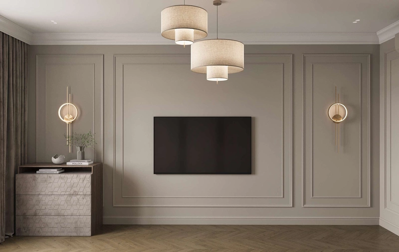 - 3D-панели в зоне ТВ – создают объем и игру света, придавая интерьеру динамику.