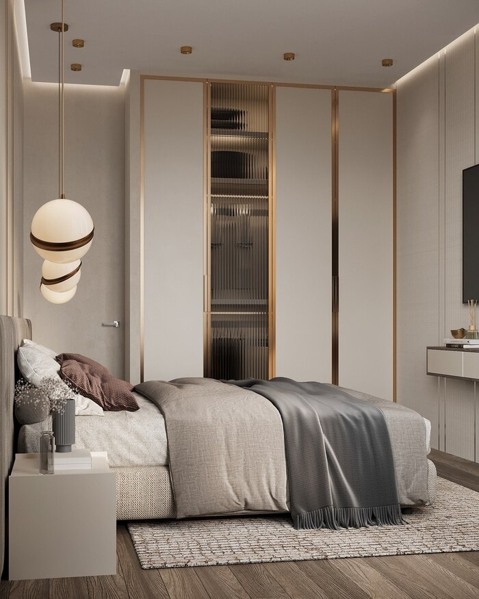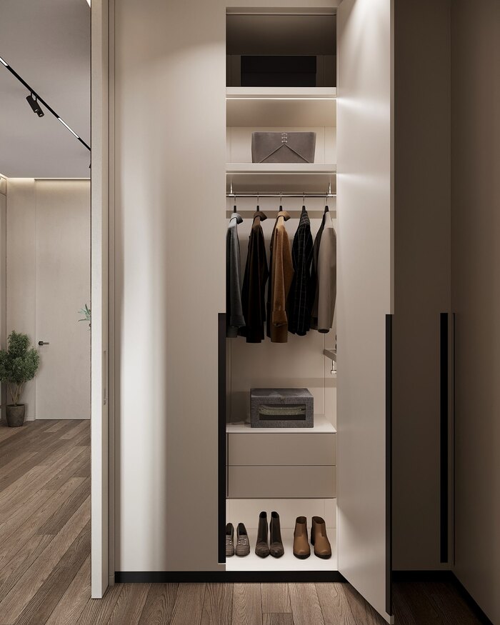 - Все мебель встроенная в стиле минимализм -без витрин и открытых полок