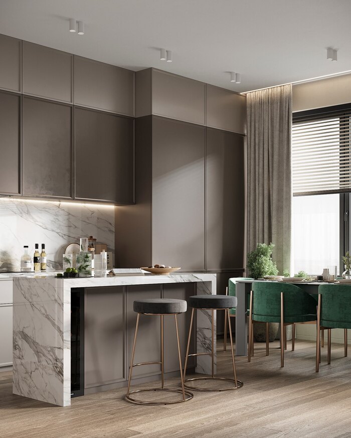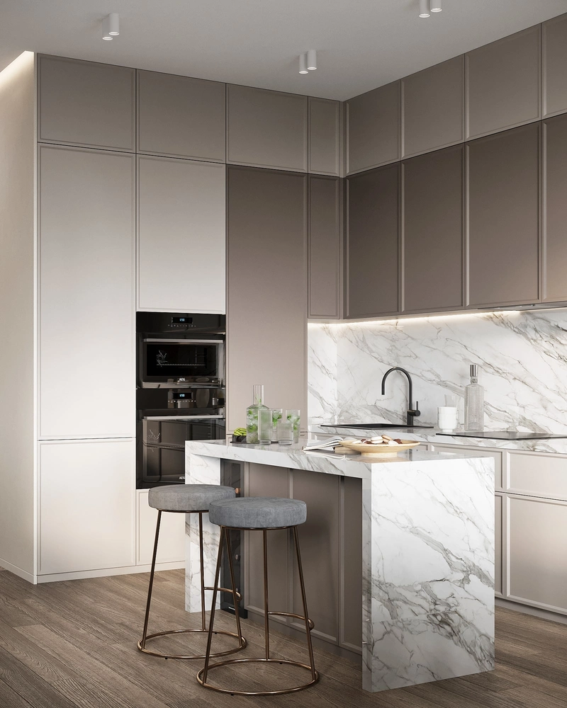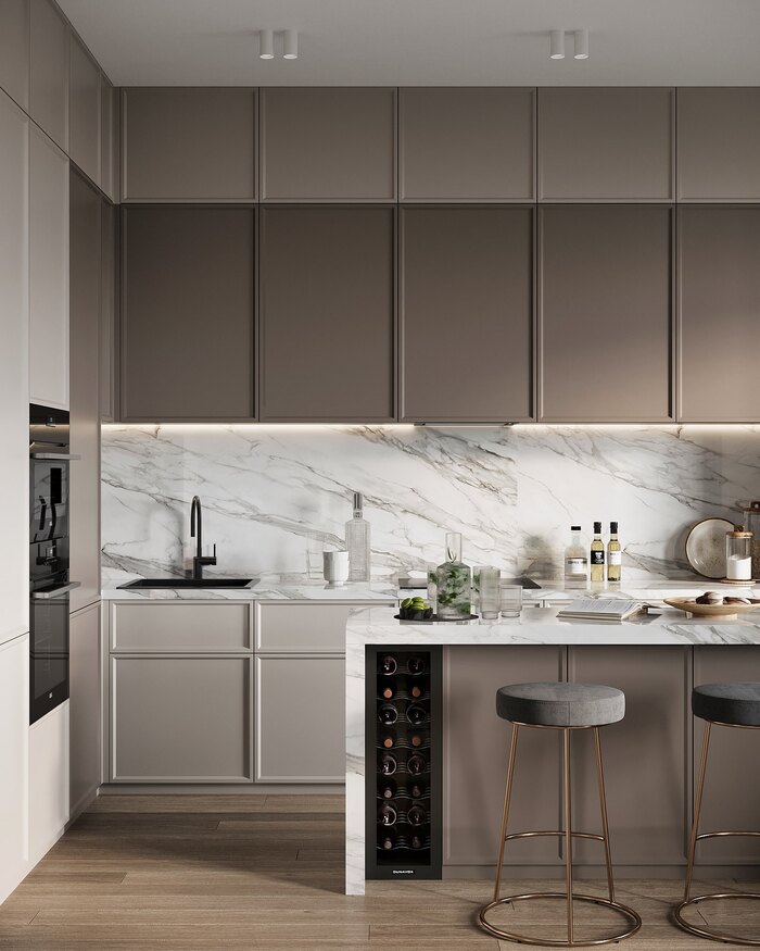 - Кухня должна быть оснащена удобным островом-барной стойкой для чаепития