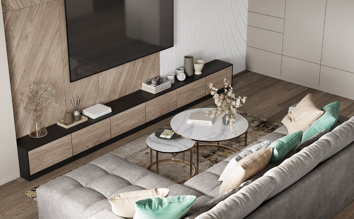 - Максимально эргономичное расположение мебели в гостиной при относительно небольшой площади