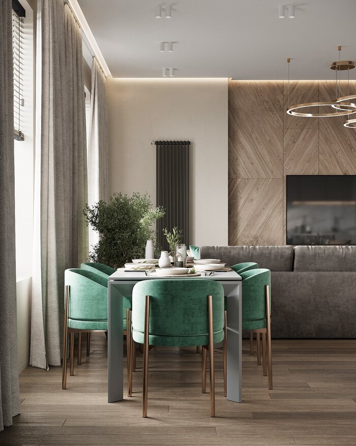 Посмотреть проектДизайн интерьера квартиры в ЖК "Петровская Доминанта" с зелеными акцентами