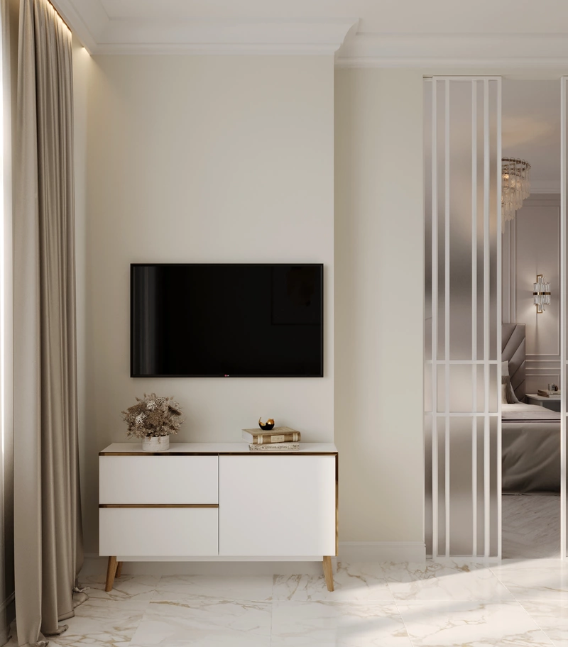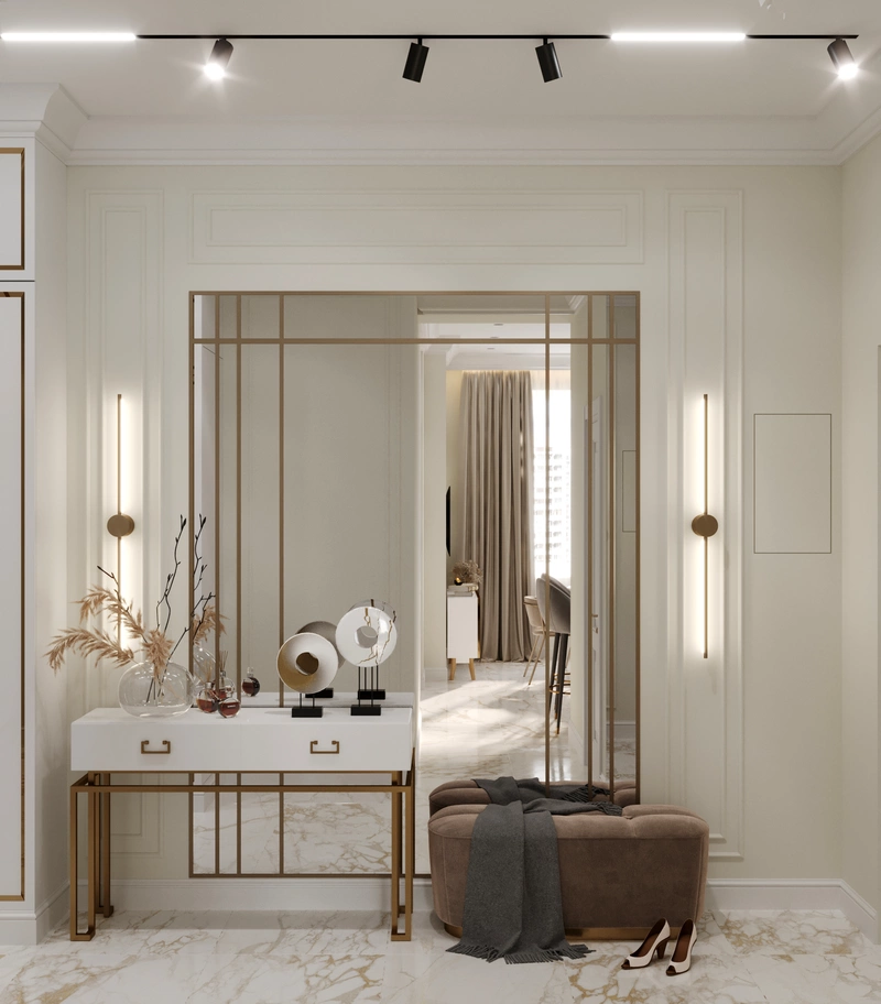 Дизайн проект интерьера квартиры в стиле легкая современная классика в ЖК "Эталон на Неве" - 105 м2