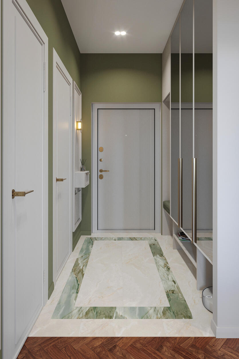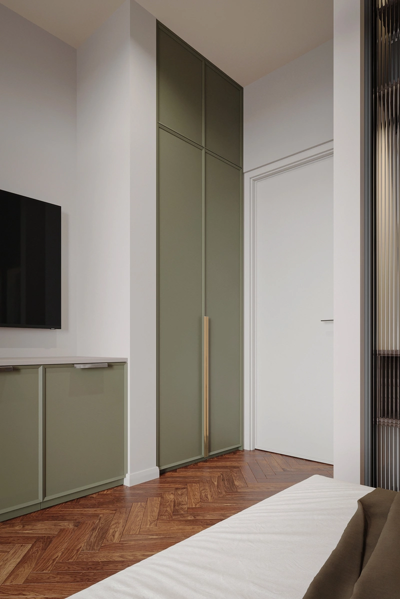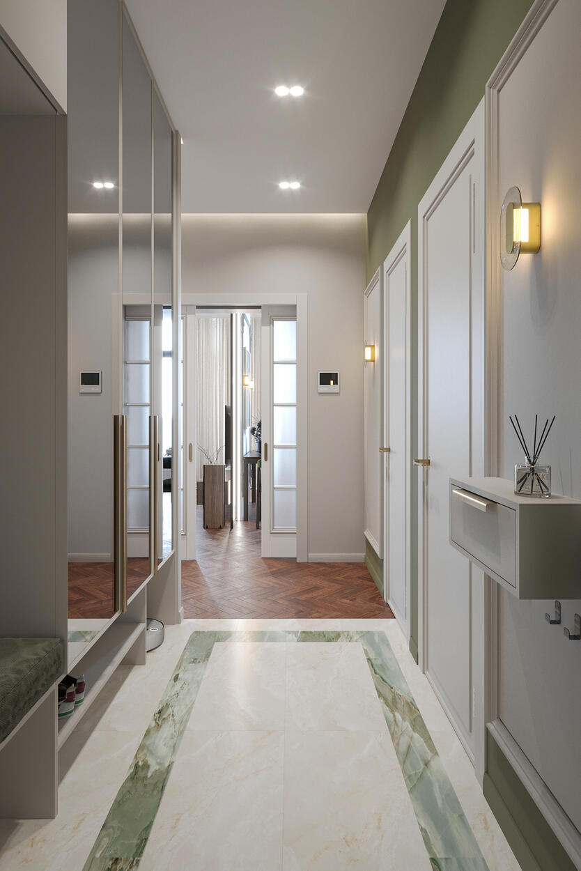 Посмотреть проектДизайн интерьера квартиры в стиле современная классика с зелеными акцентами в ЖК «Neva Residence» - 116 м²