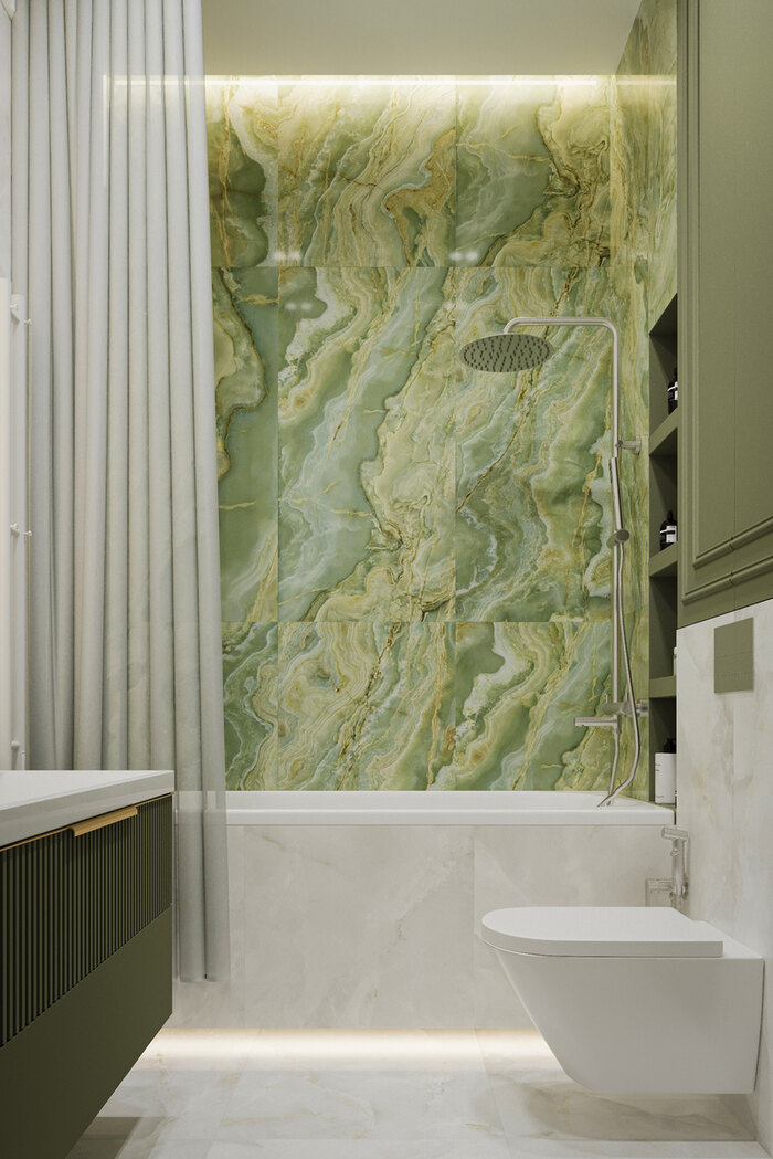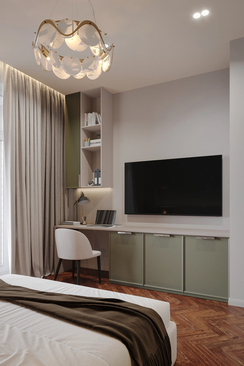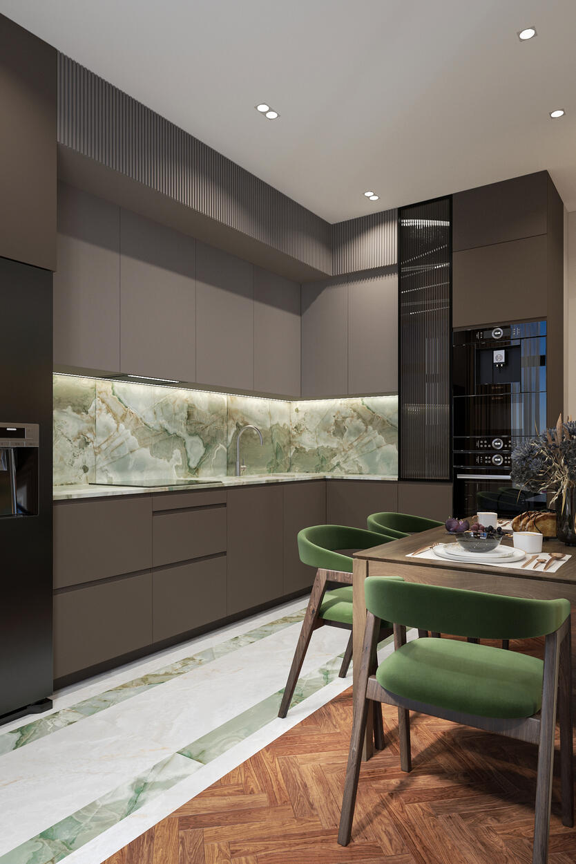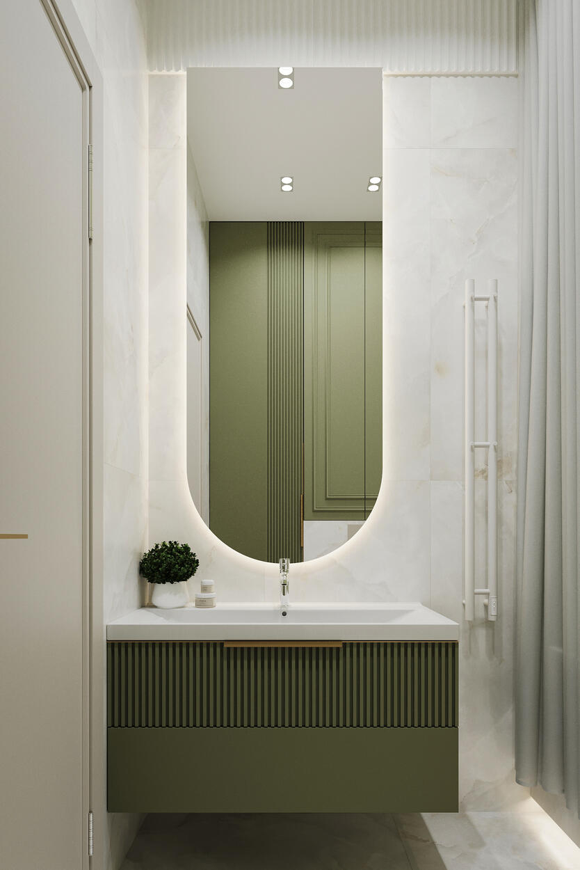 Посмотреть проектДизайн интерьера квартиры в стиле современная классика с зелеными акцентами в ЖК «Neva Residence» - 116 м²