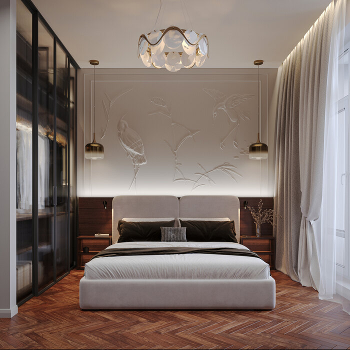 Интерьер квартиры в современном стиле с элементами французской классики в ЖК "Дефанс" - 83 м2