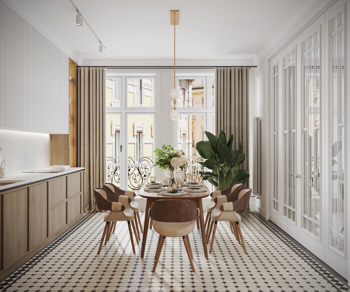 Дизайн интерьера квартиры в ЖК «Биография» в стиле легкая французская классика - 114 м²