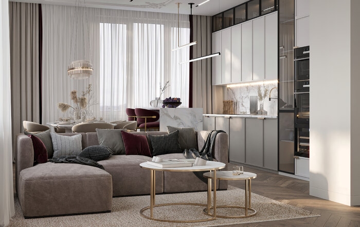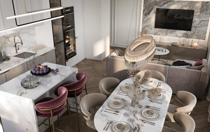 Дизайн интерьера квартиры в ЖК «Приоритет» в современном стиле с элементами ар-деко - 95 м²