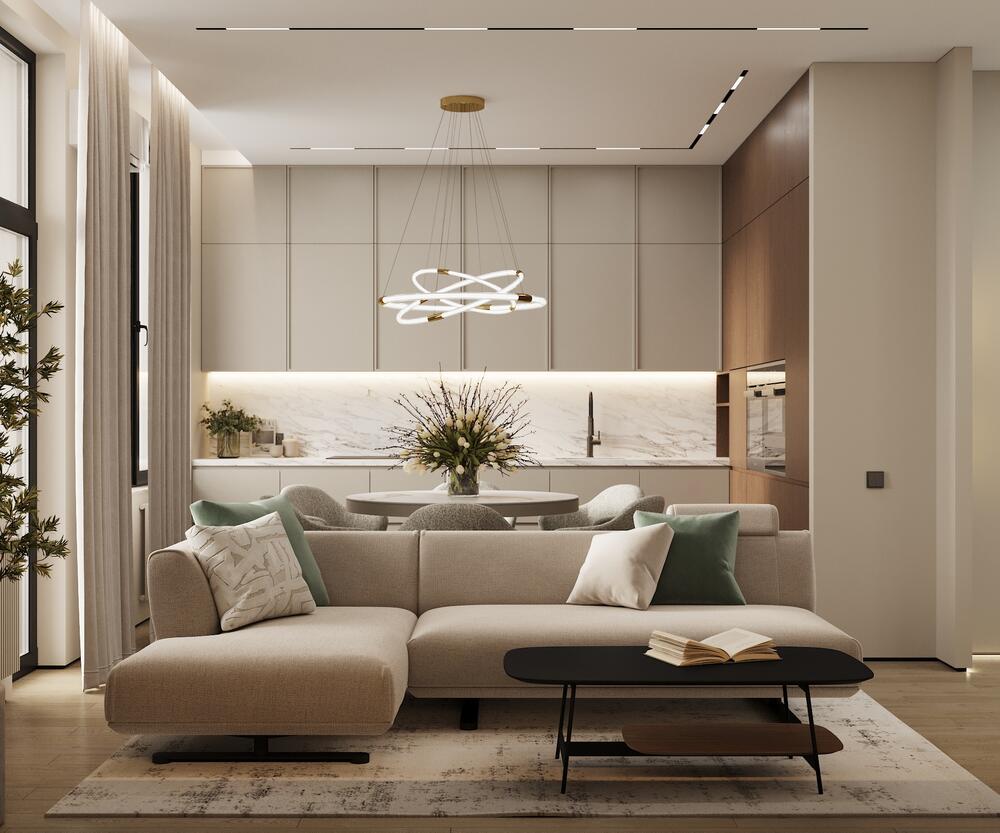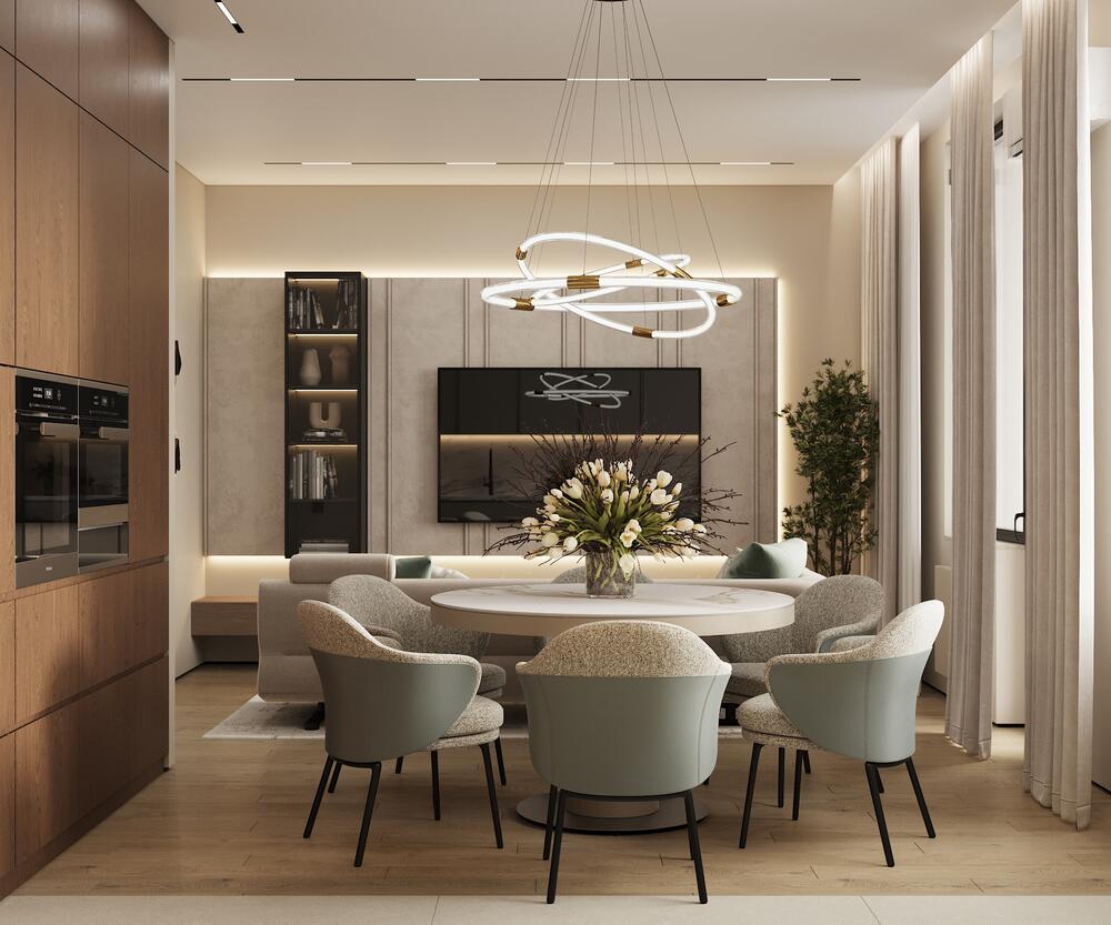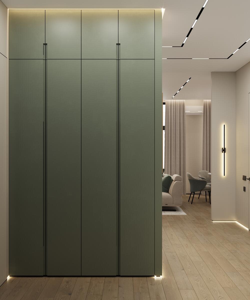 Дизайн интерьера квартиры в стиле современный минимализм с зелеными акцентами в ЖК "Клубный дом МАНХЭТТЭН" - 114 м2