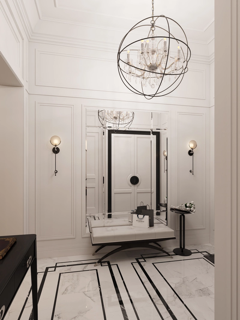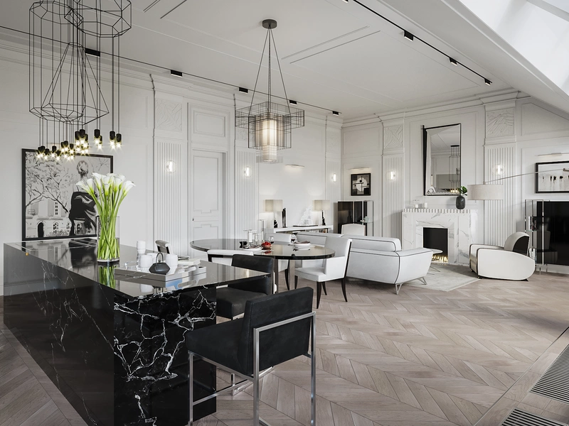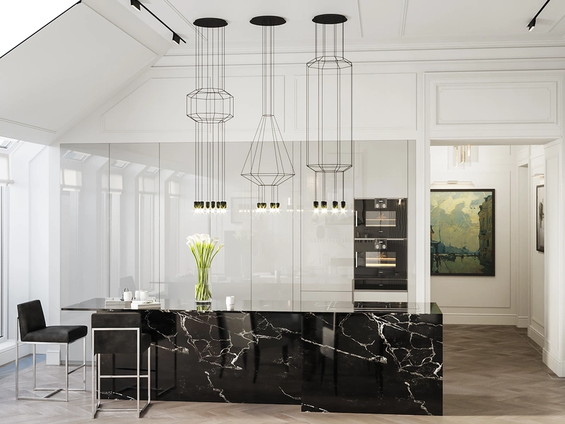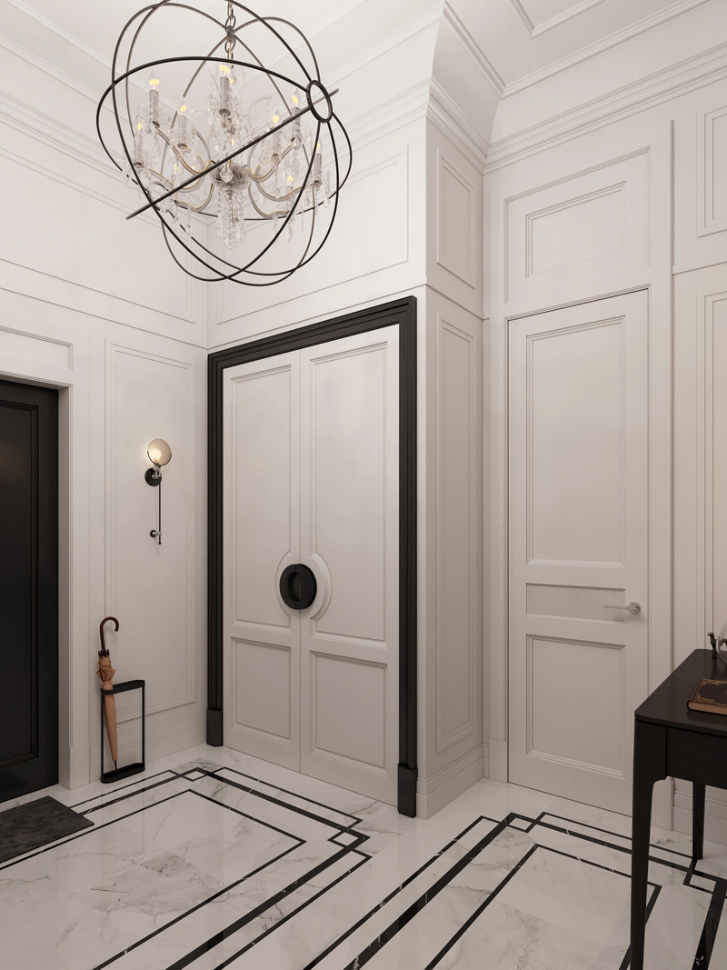 Классика и конструктивизм в дизайне интерьера квартиры в ЖК «Особняк Кушелева-Безбородко»— 377 м²