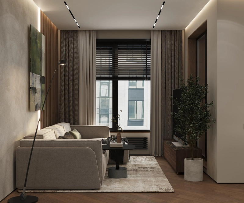 Дизайн интерьера квартиры в современном стиле с элементами минимализма в ЖК "Grand View" - 87 м2