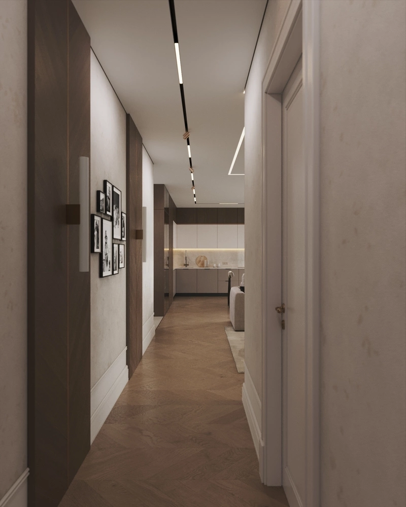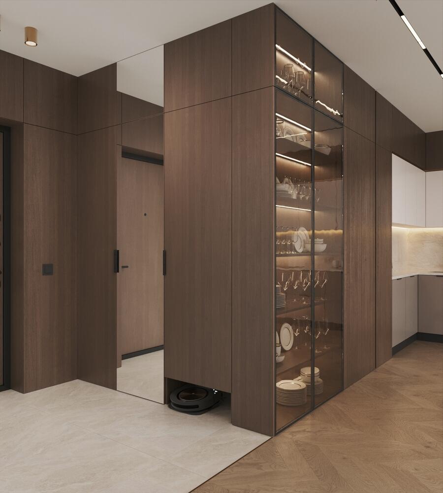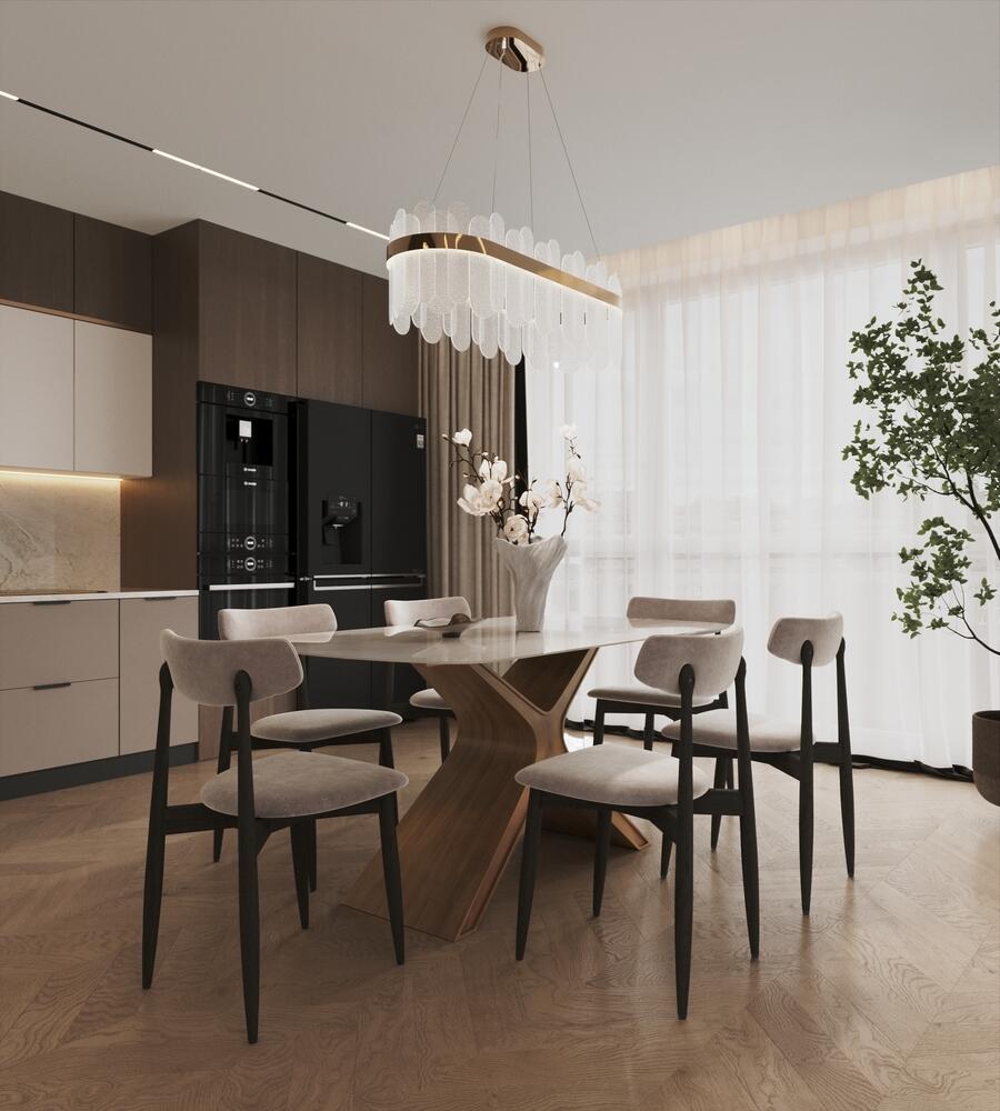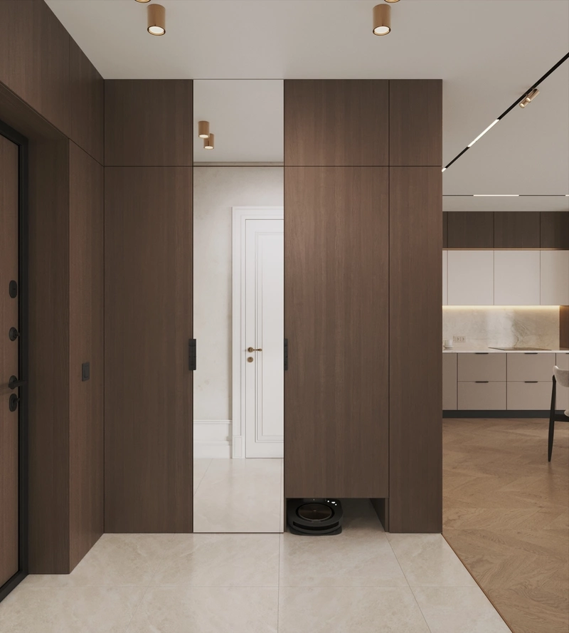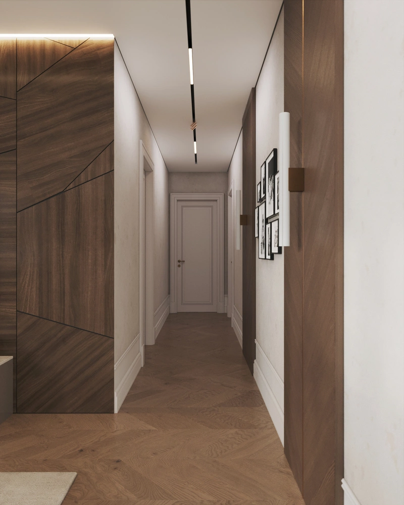 Дизайн интерьера квартиры в стиле современная классика с элементами дерева в ЖК "Наука" - 112 м2